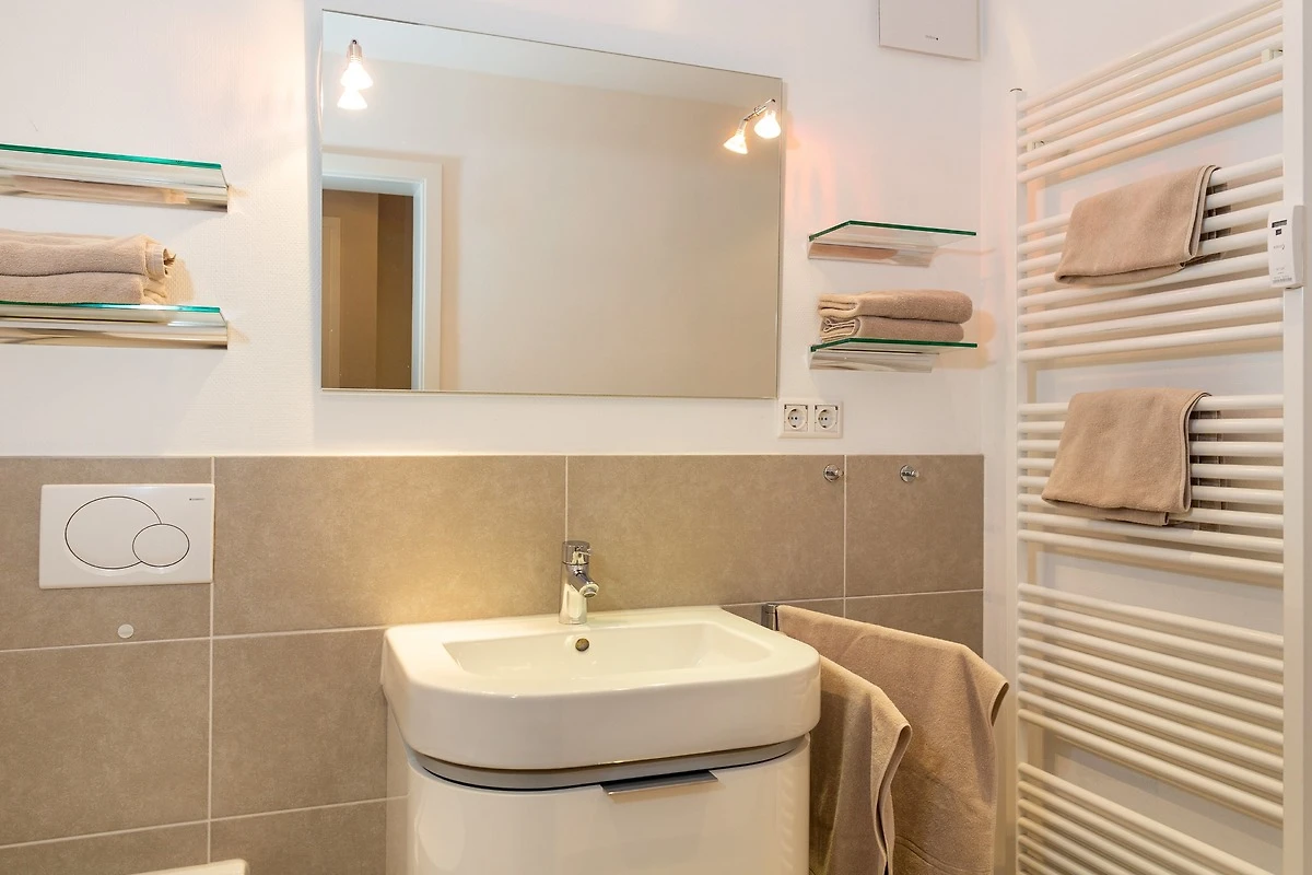 Die Ferienwohnung war nahezu perfekt ausgestattet und eingerichtet. Einzig ein paar zusätzliche Haken im Gäste-WC und in den beiden Schlafzimmern wären evtl noch gewinnbringend. Darüberhinaus war die Wohnung sehr sauber und gepflegt. Da konnte man von den Gängen im Haus leider nicht behaupten. Da wurde in den zwei Wochen weder mal gefegt oder gar gewischt.