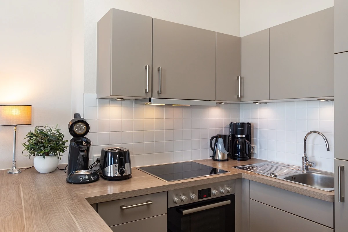 Zwei Schlafzimmer, ein moderenen Bad und Gäste-WC werden durch einen gemütlichen Wohn-Essbereich mit stilvoller Küche abgerundet.