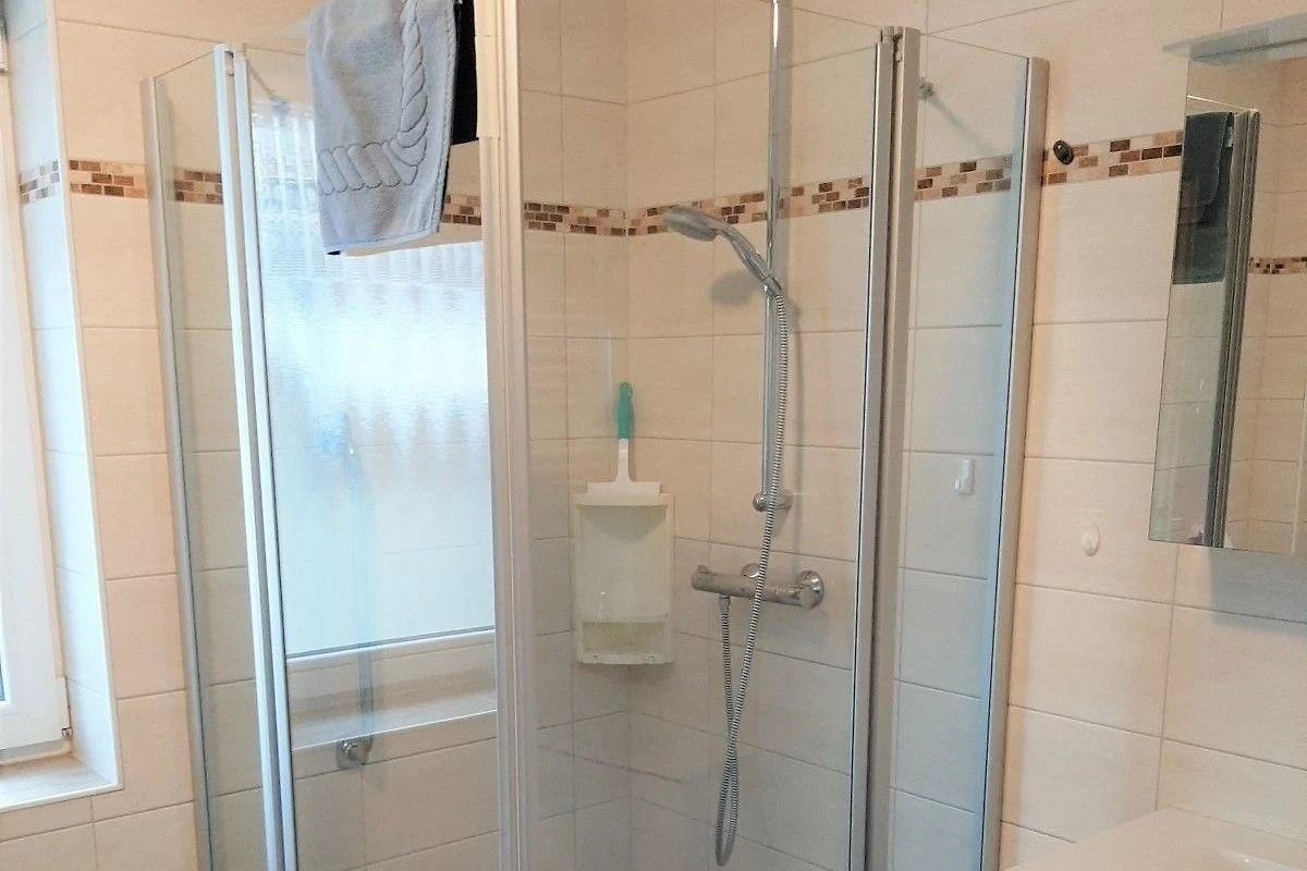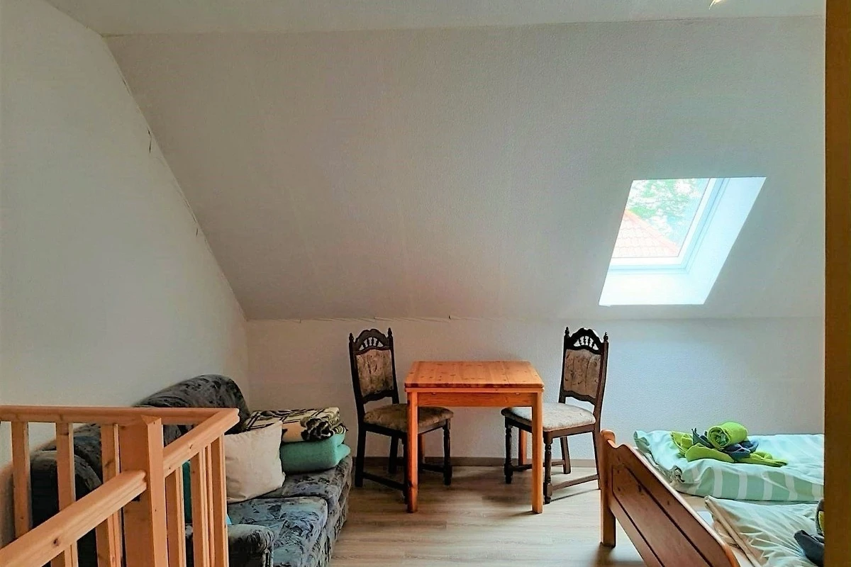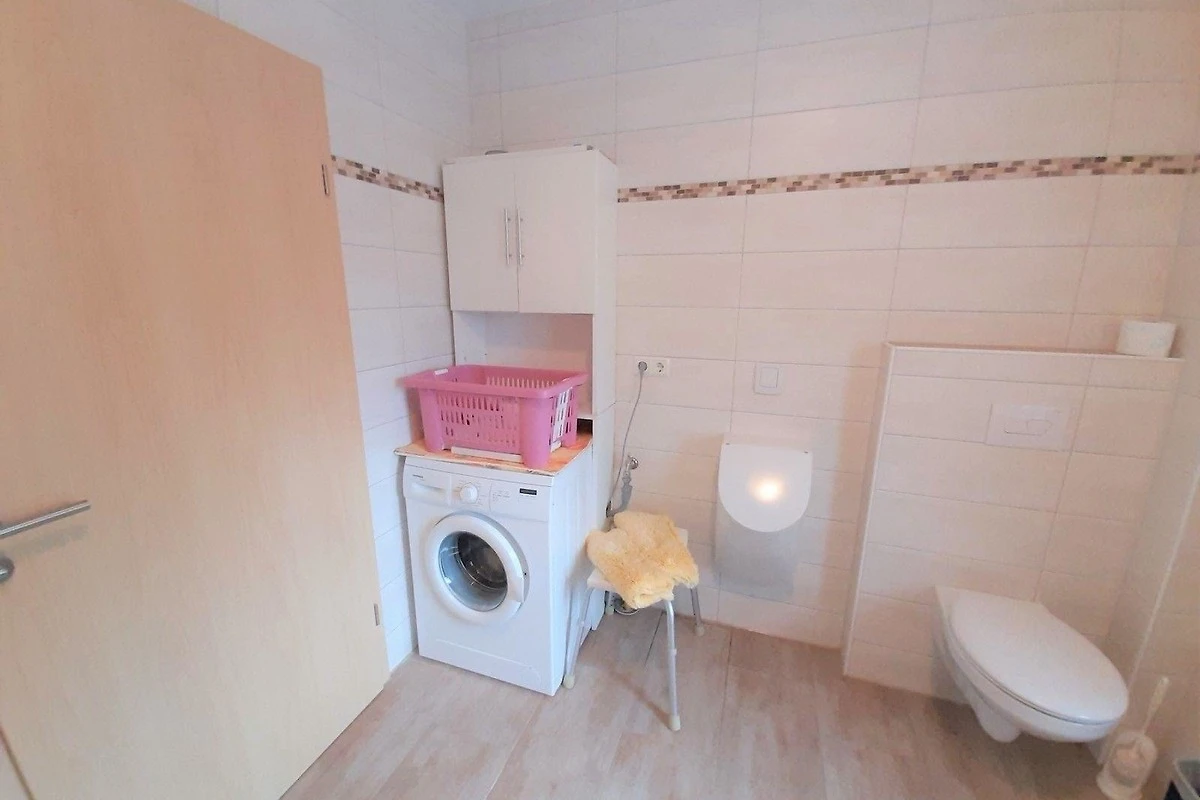 Das Badezimmer ist mit einer bodengleichen Dusche und einem Fenster ausgestattet, was für zusätzliche Helligkeit sorgt. Ein Esstisch bietet ausreichend Platz für gemeinsame Mahlzeiten. Zur weiteren Ausstattung gehören WLAN-Internet, eine HiFi-Anlage, TV und Fussbodenheizung. Der Parkplatz vor dem Haus sowie die Waschmaschine, Staubsauger und der Wäscheständer machen den Aufenthalt noch angenehmer. Das gemütliche Sofa und der Sessel laden zum Entspannen ein.