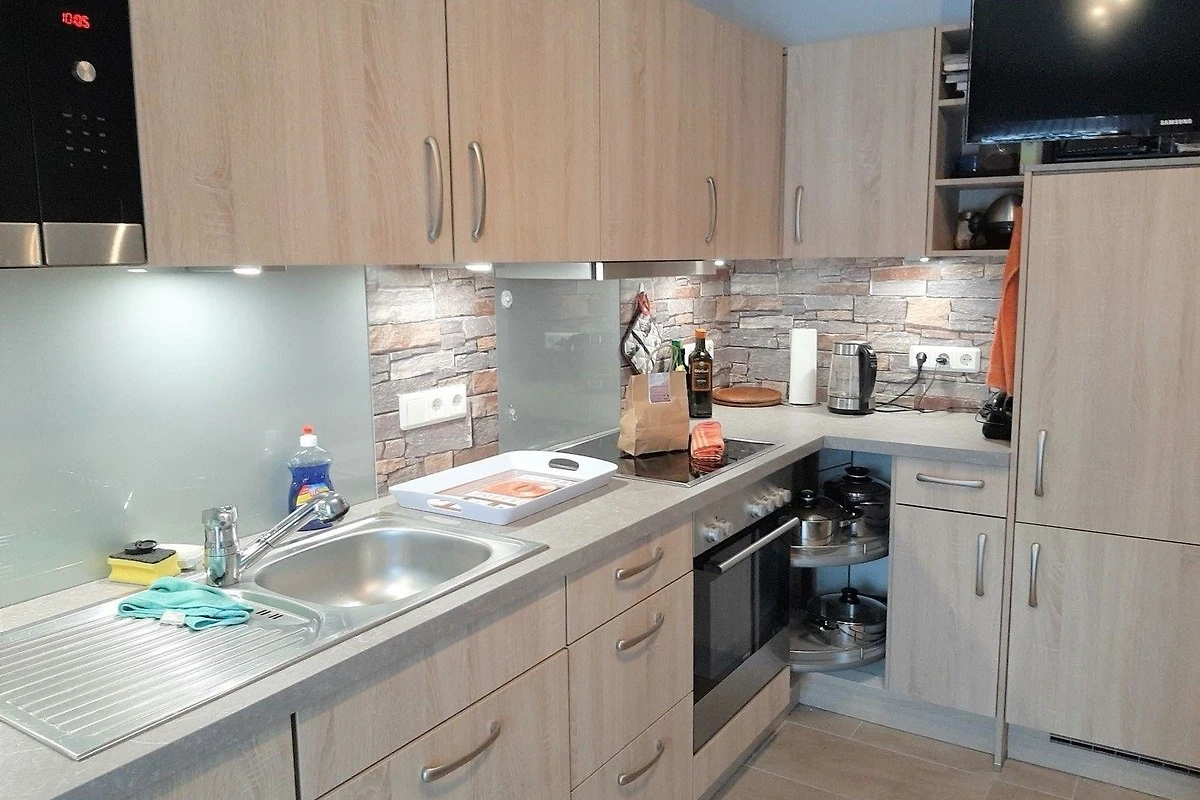 Die Ferienwohnung bietet ein komfortables Ambiente und eignet sich ideal für Allergiker. Mit drei Schlafzimmern, darunter zwei mit Doppelbetten und einem mit einem Einzelbett, finden bis zu fünf Personen ausreichend Platz. Die separate Küche ist komplett ausgestattet mit einem Geschirrspüler, Elektro- und Gasherd, Backofen, Mikrowelle, Wasserkocher, Kaffeemaschine, Toaster sowie einer Gefriermöglichkeit, um kulinarische Köstlichkeiten zu zaubern.