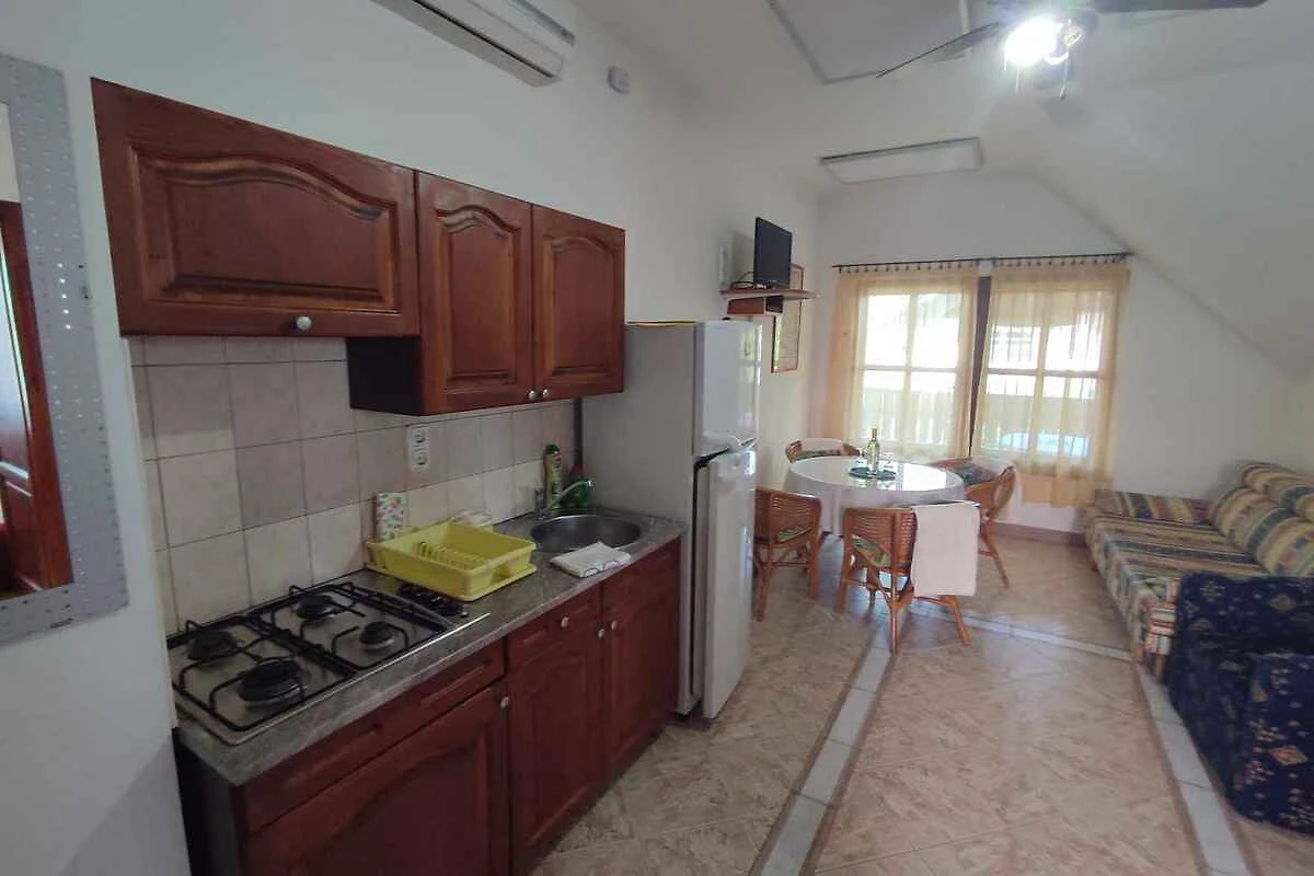 Die Unterkunft ist in Strand- und Hafennähe. Das Auto kann gegen Aufpreis auf dem Grundstück der Eigentümerin geparkt werden. Die Wohnung befindet sich in der oberen Etage und hat einen überdachten Balkon mit Eßtisch und Stühlen. Wohnung war sauber. Es ist ein Gasherd vorhanden, eine Spüle, ein Kühlschrank, eine Mikrowelle, ein Toaster und eine Kaffeemaschine. Die Vermieterin ist sehr freundlich.