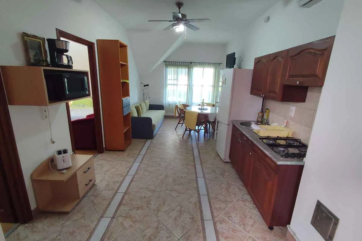 Ferienwohnung hat eine günstige Lage, man könnte im Urlaub ohne Auto auskommen. Balaton Strand (Liegewiese) quasi um die Ecke und sauber. Einkaufsmarkt und Bahnhof gut zu Fuß erreichbar. Abzug gibt es bei der Ausstattung. Auch wenn die kleine Küchenzeile ausreichend wäre, es ist aber kein Platz für die Kaffeemaschine, Toaster. Es mußte improvisiert werden.