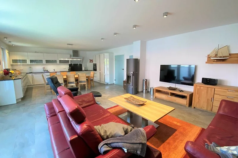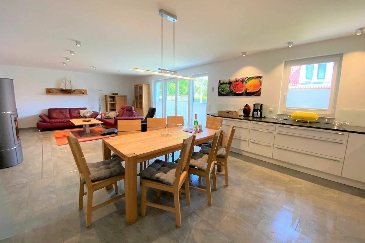 Das offene und grosszügig geschnittene Haus verfügt über eine grosse Wohnküche mit angrenzenden Wohnzimmer. Perfekt für einen Urlaub mit Familie oder Freunden. Auf 200qm können bis zu 8 Personen nächtigen, auch unsere Vierbeiner sind herzlich Willkommen.