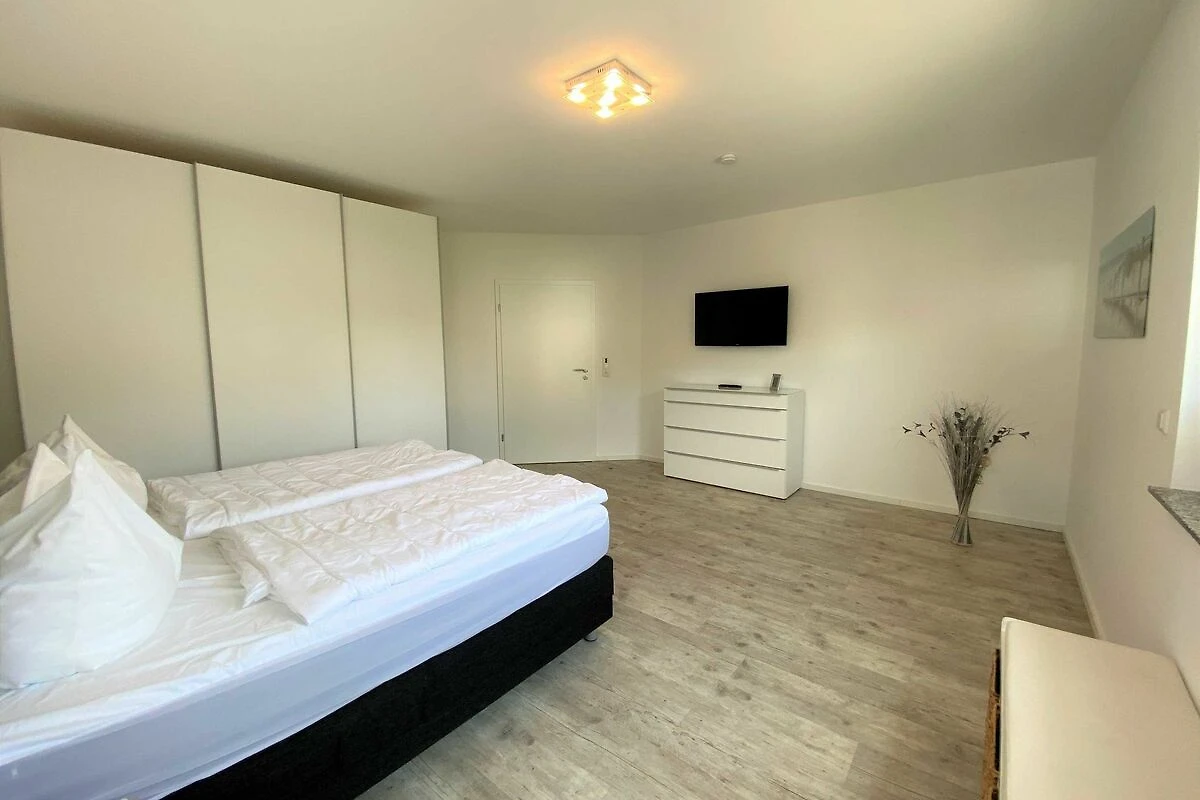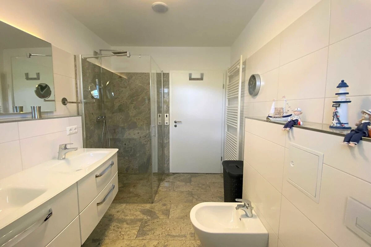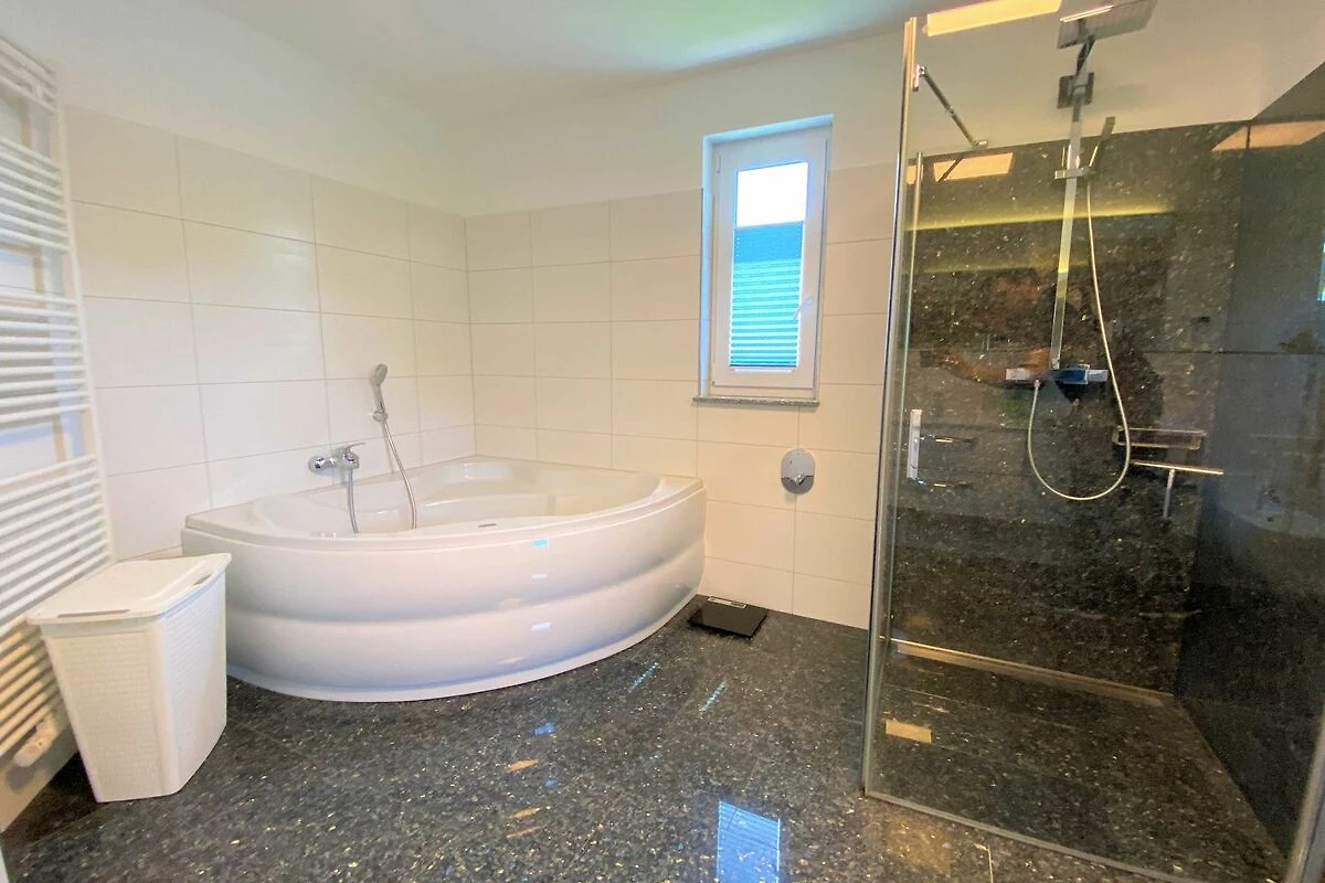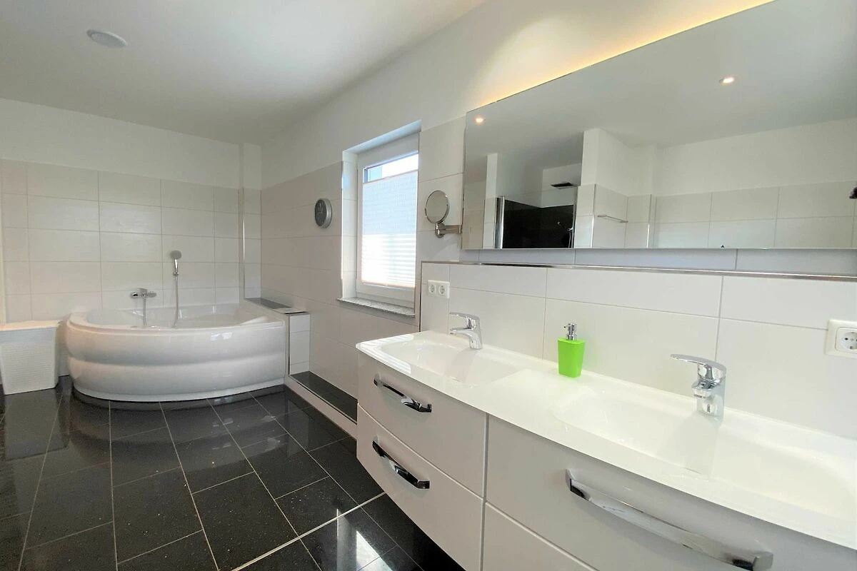 Im Ferienhaus Corvin befinden sich vier modern eingerichtete Schlafzimmer mit jeweils einem Doppelbett. Zwei der drei Bäder sind mit Whirlpools ausgestattet, auch eine Sauna ist im Ferienhaus vorhanden.