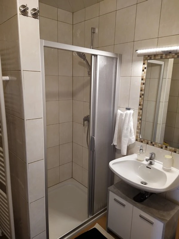 Handtücher und Bettwäsche werden gestellt und zusätzlich ist eine Waschmaschine im Badezimmer vorhanden.