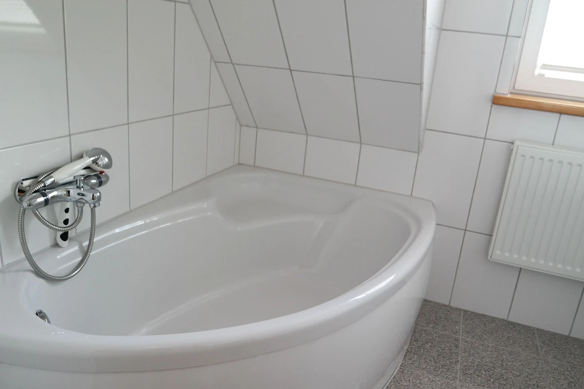 Bad 1: Badewanne, WC , moderner Badblock, w/k, Handtuchwärmer, Handtuchwärmer