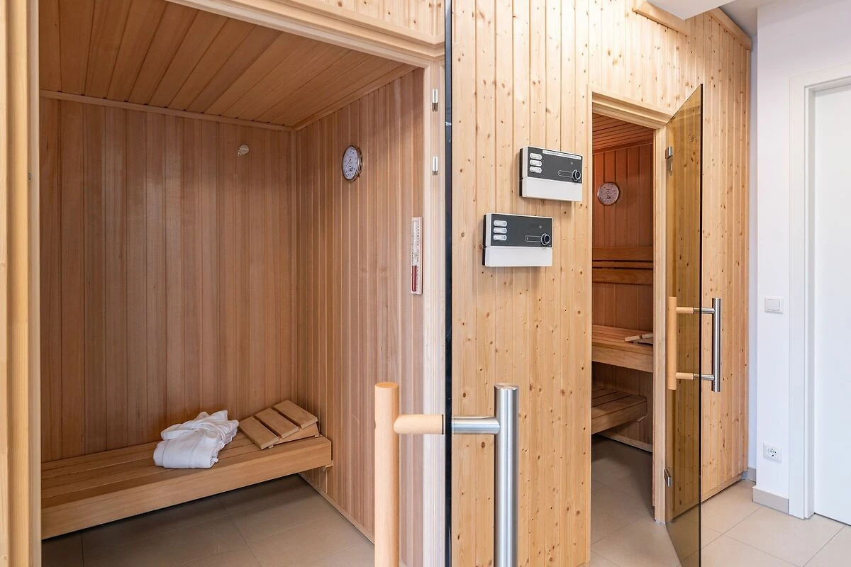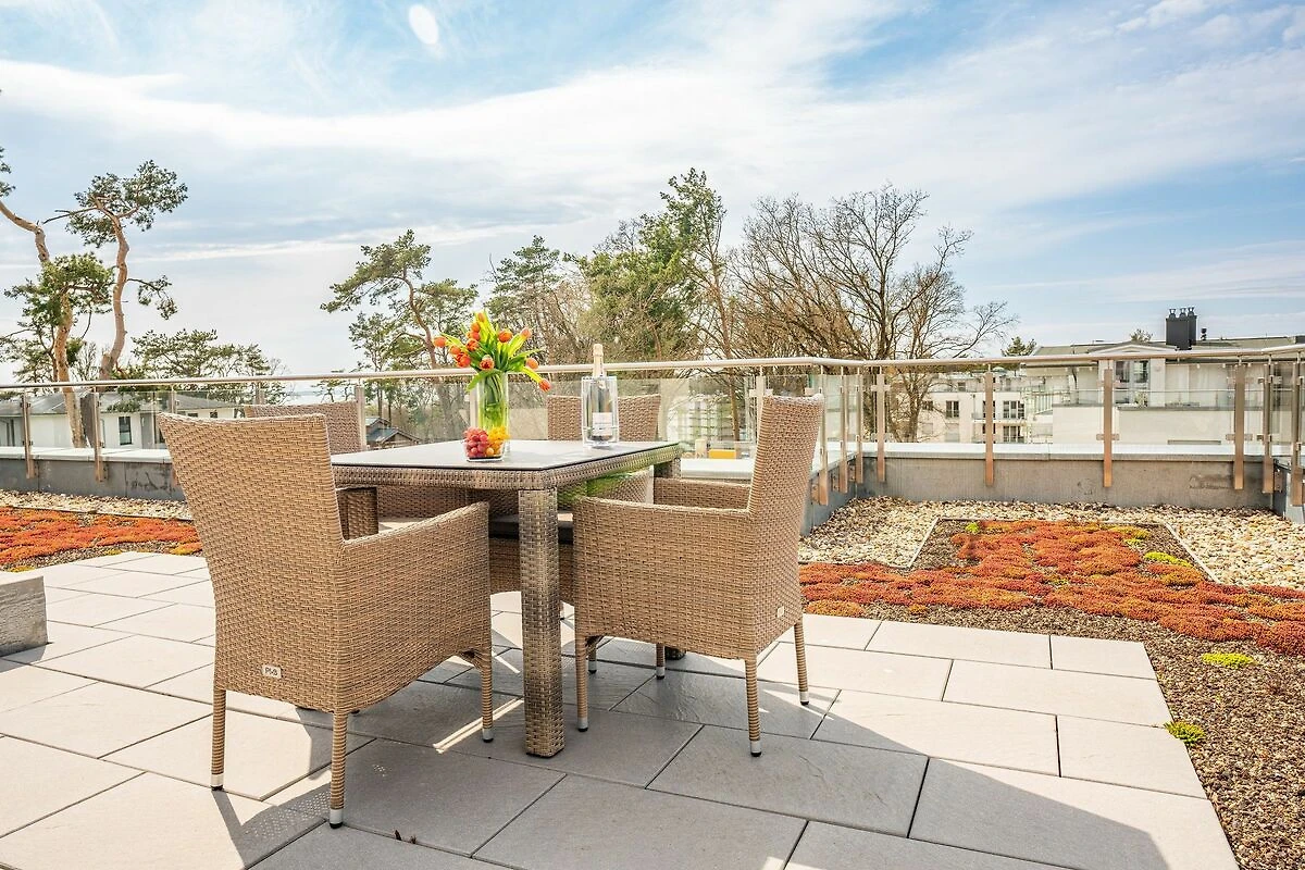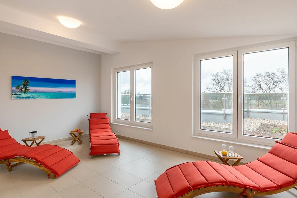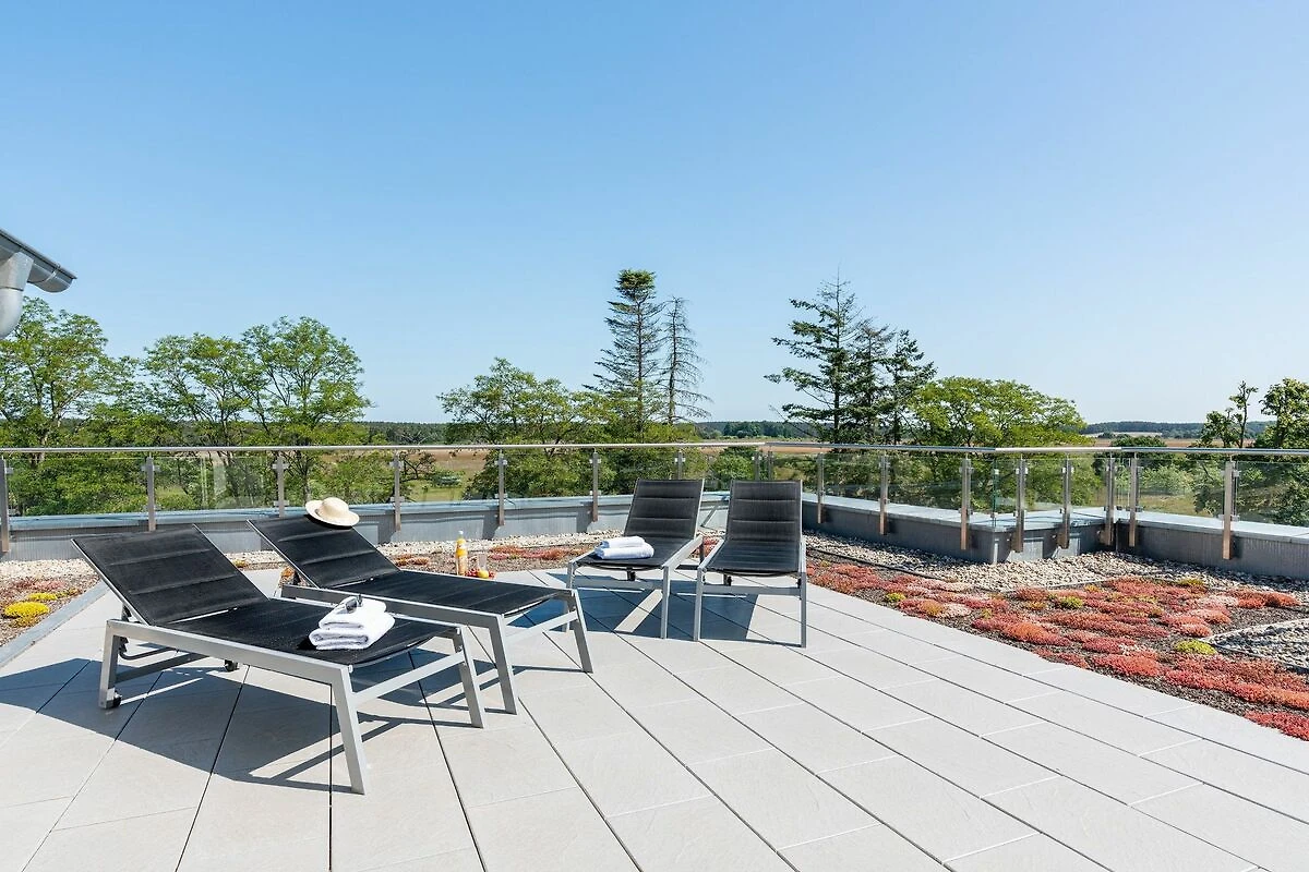 Weit ab von der Hektik und den Besuchermassen öffentlicher Wellnessangebote, finden Sie im Dachgeschoss des Hauses auf 190 m² die Ruhe, die Sie sich verdient haben. Entspannen Sie im hauseigenen, kostenfreien Wellnessbereich mit zwei Saunen und gemütlichem Ruheraum. Geniessen Sie die klare Ostseeluft auf der grossen angrenzenden Dachterrasse.