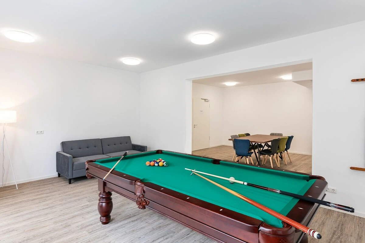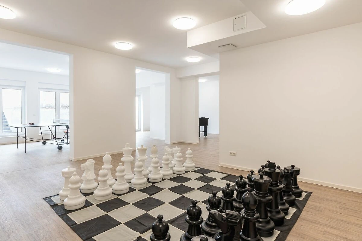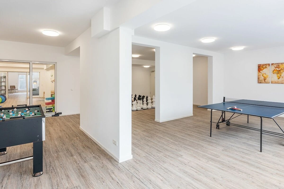 Ihre Kinder dürfen sich auf den vielseitig gestalteten Freizeitbereich (390 m²) im Souterrain mit Tischtennis, Kickertisch, Schachbrett und Spielezimmer freuen, der selbst an Schlechtwettertagen keine Langeweile aufkommen lässt. Erwachsene finden am Billardtisch oder in der gemütlichen Lounge-Ecke Ausgleich mit einem guten Buch oder Musik im Ohr.