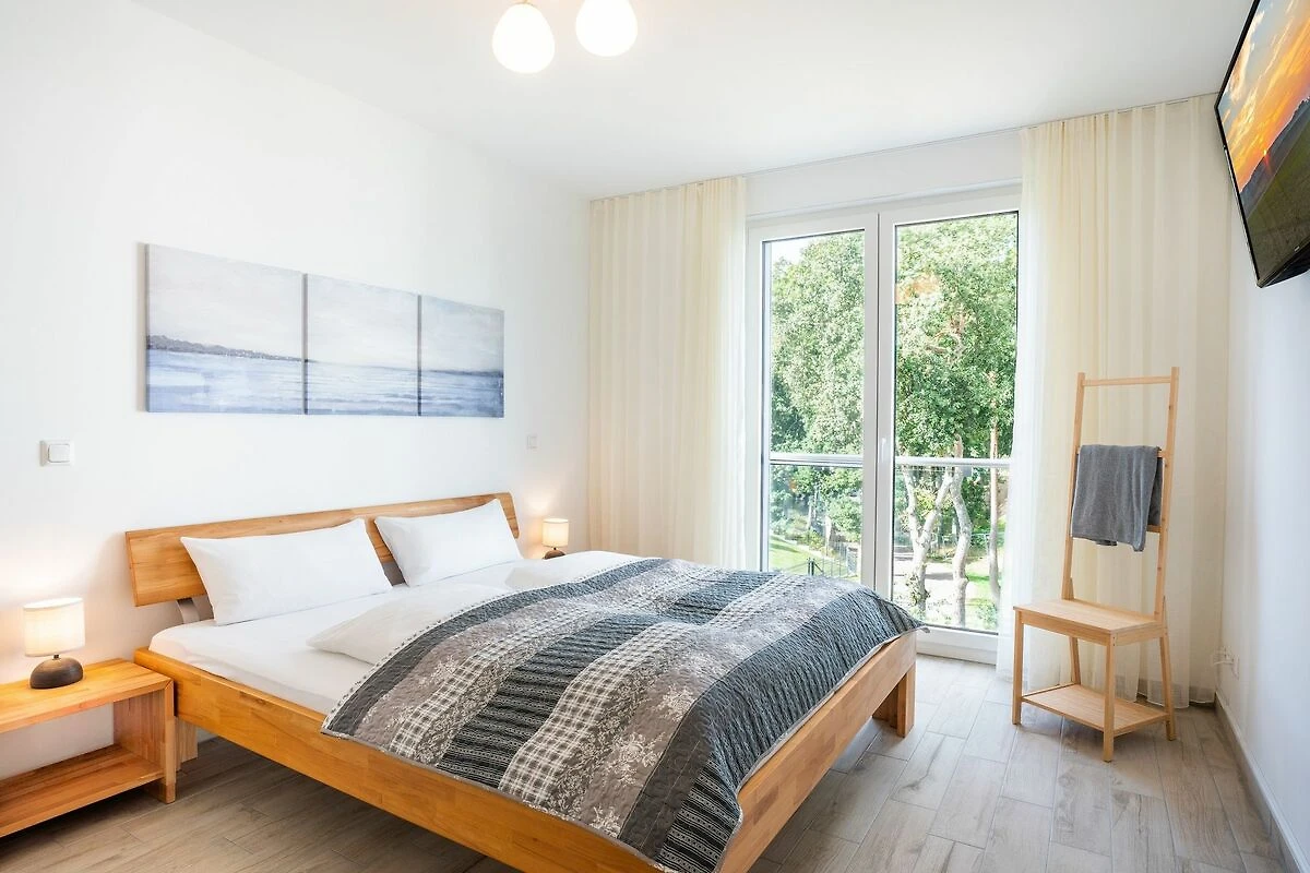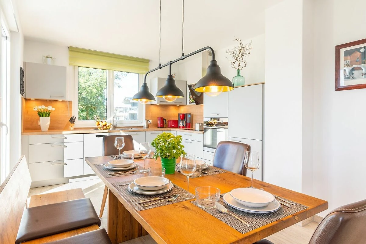 Auf einer Wohnfläche von 92 m² finden vier Erwachsene und ein Kleinkind bis zwei Jahre in dieser modern eingerichteten Ferienwohnung ausreichend Platz für einen entspannten Urlaub am Stettiner Haff auf Usedom.