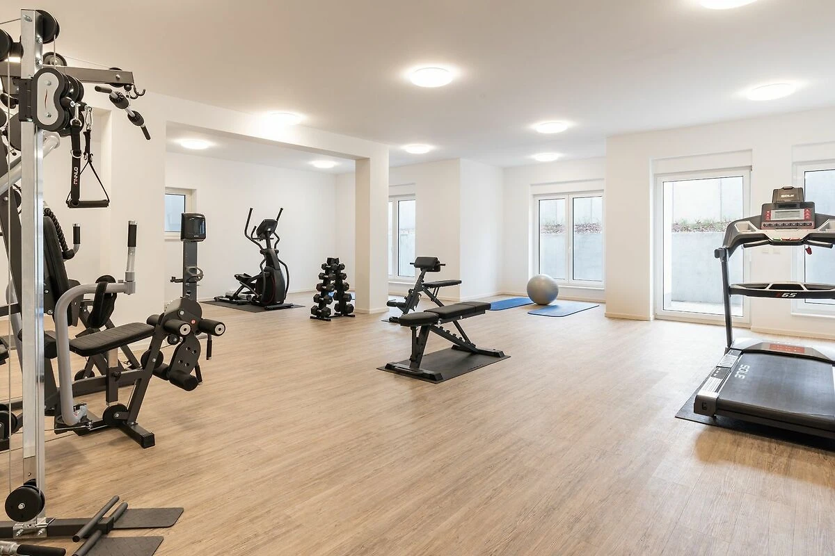 Die aktiven Urlauberinnen und Urlauber kommen in dem grosszügigen, lichtdurchfluteten Fitnessraum auf ihre Kosten, wo das Angebot an hochwertigen Marken-Sportgeräten u. a. mit verschiedenen Cardiogeräten, einer Multifunktions-Kraftstation und Hantelbänken ein individuelles Training ermöglicht.