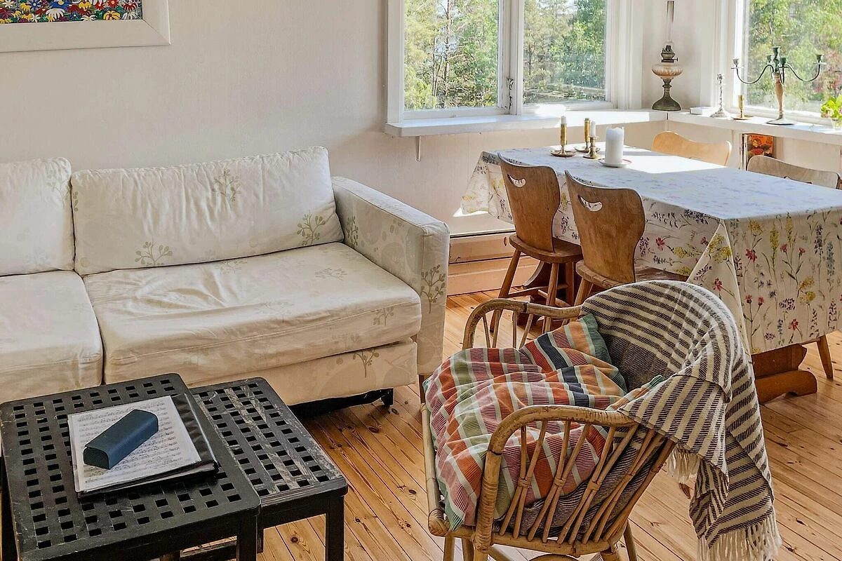 Das Ferienhaus war genau das, was wir für unseren Familienurlaub benötigten, Es war geräumig genug für unsere Gruppe von sechs, mit einem gemütlichen Wohnbereich und einer gut ausgestatteten Küche, Obwohl der Anbau kein fließendes Wasser hatte, war es perfekt, damit die Kinder ihren eigenen Raum hatten, Wir schätzten die Nähe zum kinderfreundlichen Strand bei Ällmorabadet, nur einen kurzen Spaziergang entfernt, Insgesamt ein praktischer und komfortabler Aufenthalt, obwohl es im Hauptgebäude ein paar mehr Annehmlichkeiten gebrauchen könnte,