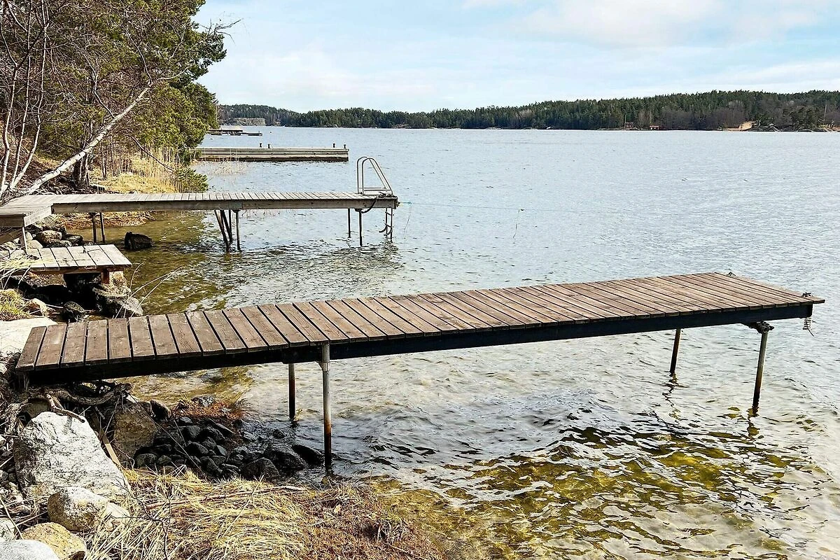 Oben auf einer Anhöhe findet man dieses gemütliche Ferienhaus in Alleinlage. Sie wohnen hier schön abgeschirmt, mit kleinem Blick durch das Grün der Bäumen hindurch hinunter zum nahen Seeufer. Unten auf der anderen Straßenseite befindet sich Ihr eigener Steg, von dem aus Sie z.B. ein Bad nehmen oder den Sonnenuntergang bewundern können. Das Ferienhaus ist einfach und funktional ausgestattet, mit allem was man für Selbstverpflegung und zum Übernachten braucht. Es gibt ein Schlafzimmer mit einer sogenannten Familienkoje, einem Stockbett mit breiterer Liegefläche unten. Zudem gibt es eine doppelte Schlafcouch im Wohnzimmer. Dusche und Sauna befinden sich im Keller. Nebenan auf dem Grundstück steht der separate Annex mit zwei weiteren Schlafplätzen sowie einer kleinen Küche, jedoch ohne Wasseranschluss. Toilette nur im Haupthaus. Das weitläufige Naturgrundstück erstreckt sich über den Berg hinter dem Haus und ein bisschen in den Wald hinein. Dort gibt es einen See zum Baden. Bei Tyresö, Brevik, gibt es viele schöne Wanderwege und Klippen zum Sonnenbaden und Schwimmen. Wenn Sie einen kinderfreundlichen Strand suchen, liegt Ällmorabadet nur ca. 250 m vom Haus entfernt. Wenn Sie einen Ausflug nach Stockholm unternehmen möchten, gibt es eine Bushaltestelle etwa 400 m vom Haus entfernt.