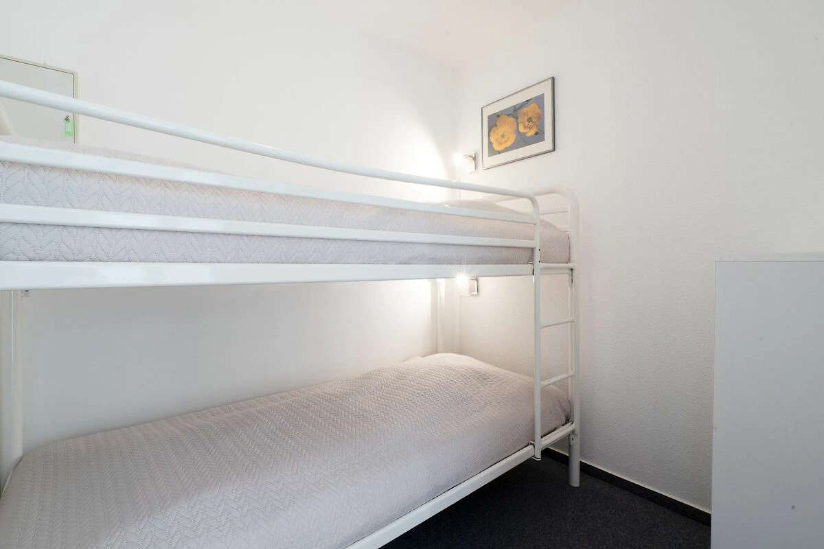 Die Ferienwohnung besteht aus einem großen sonnigen Zimmer mit einem kombinierten Wohn-, Ess- und Küchenbereich, einem Schlafzimmer mit Doppelbett (2x 90 x 200 cm) und Blick aufs Meer, einem kleinen innenliegenden Kinderzimmer mit Etagenbett (jeweils 80 x 200 cm), einem hellen Duschbad, einem Flur mit Schrankablage und zwei Balkonen, die zum Strand ausgerichtet sind.