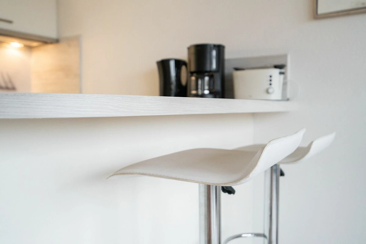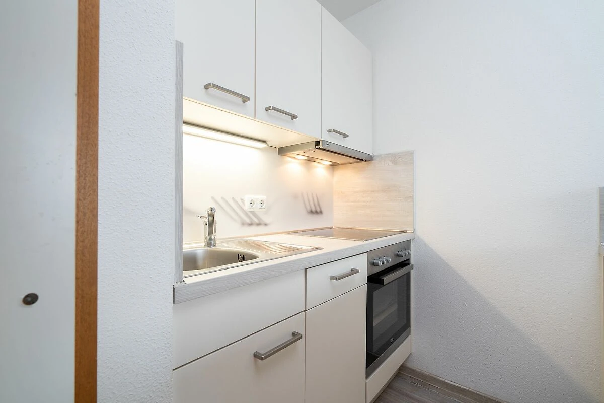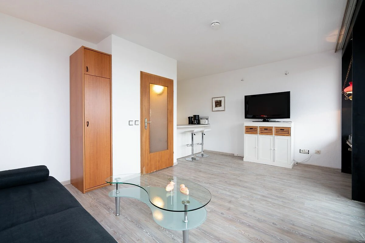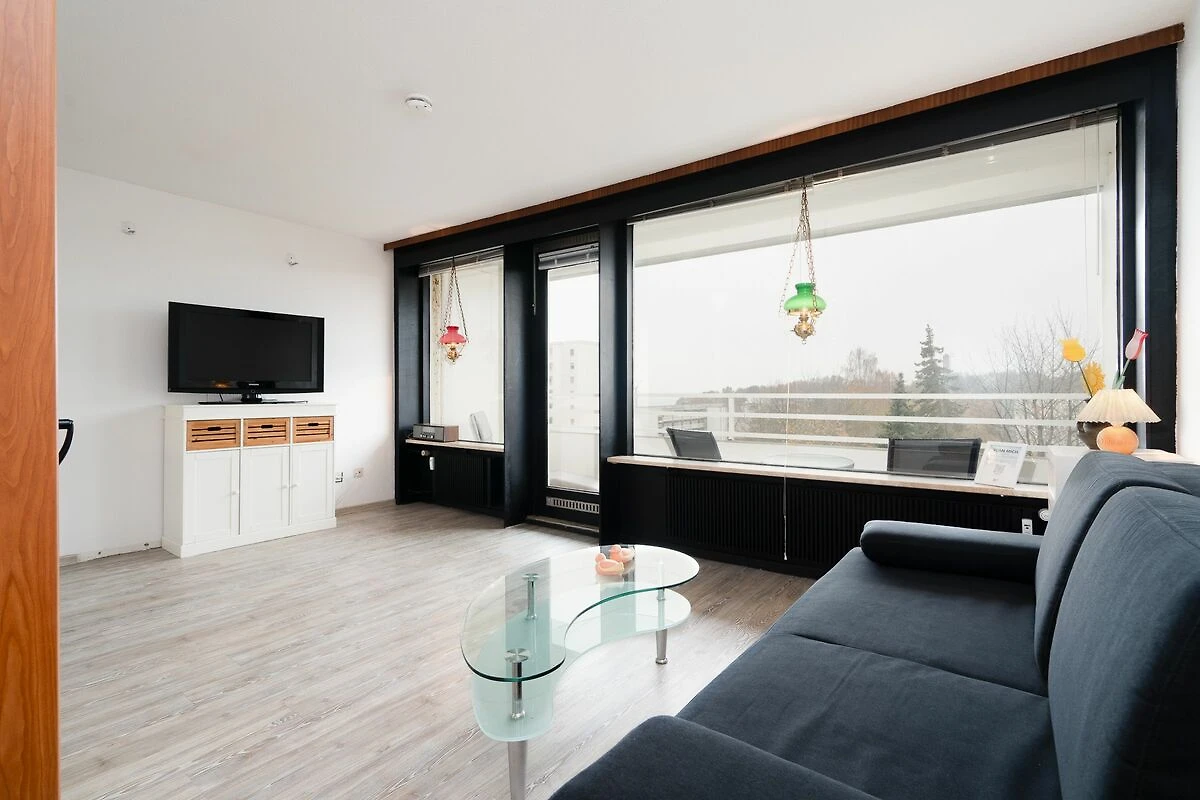 diese 1-Raum-Ferienwohnung liegt in der Apartmentanlage Ferienpark in der 4. Etage mit einem Balkon in Süd-West-Lage und seitlichem Ostseeblick über die Wohnanlage hinweg. Die Wohnung ist ca. 33 qm groß und für 2 Personen geeignet. Im kombinierten Wohn- und Schlafraum steht Ihnen ein Schlafsofa (140 cm x 190 cm) zur Verfügung. Die moderne Küche ist mit Spülmaschine, Backofen und Herd ausgestattet und mit einem Esstresen zum Wohnraum hin offen. Das Duschbad ist innenliegend. Der Fussboden ist mit Designerplanke ausgelegt. Zum Strand sind es nur wenige Gehminuten. PKW-Stellplatz inklusive.