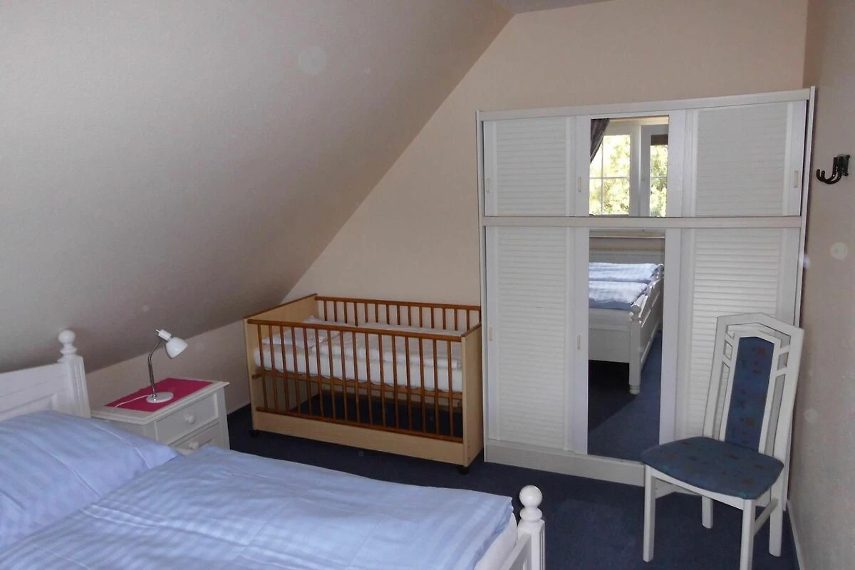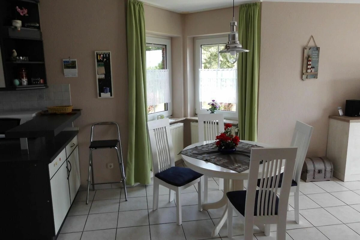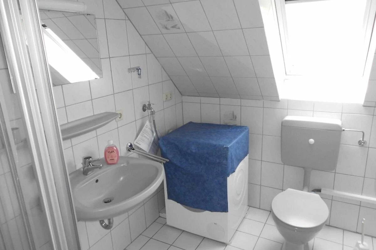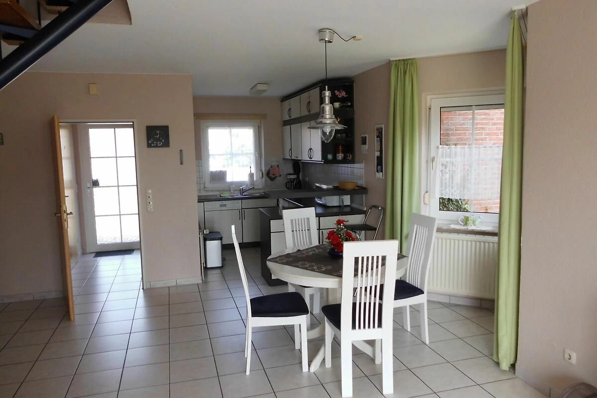 Im Erdgeschoss befindet sich der geräumige komplett geflieste Wohn- Essbereich mit gut ausgestatteter Einbauküche mit Mikrowelle, Kühlschrank, Backofen, Geschirrspülmaschine, Kaffeemaschine u.v.m.. Ein Gäste-WC befindet sich ebenfalls im EG. Im Wohnbereich befindet sich ein großer Flachbild-Fernseher, DVD-Player und eine Musikanlage. Im Obergeschoss gibt es 2 Schlafräume (1 x 1 Doppelbett, 1 x 2 Einzelbetten) und ein Duschbad mit WC und Waschmaschine.