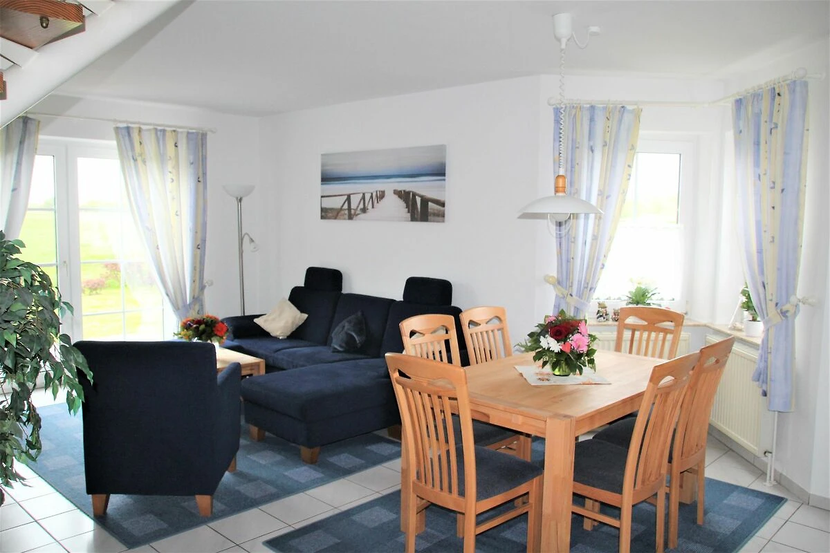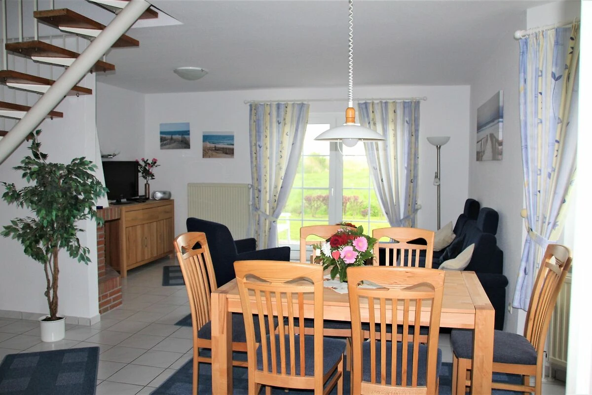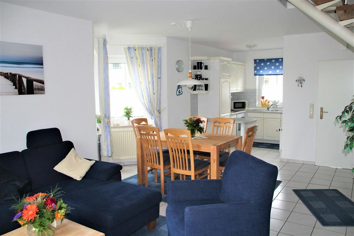 Diese schöne Haushälfte liegt in traumhafter Lage in einer Sackgasse in Strandnähe und in unmittelbarer Nähe zur bekannten Bade- und Saunalandschaft „Ocean Wave“ , Seehundaufzuchtstation, Minigolfplatz, Segway- und Fahrradverleih, Bäcker und diversen Restaurants. Die Terrasse, mit unverbautem Blick in die Natur, ist möbliert.