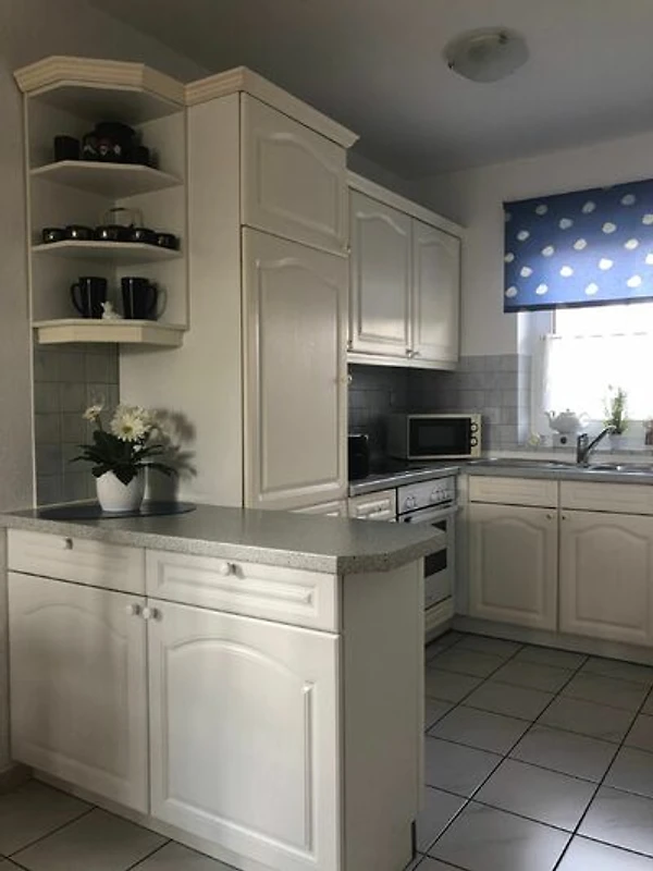 Im Erdgeschoß befindet sich der offene großzügige, geflieste Wohn-Essbereich mit offenem Kamin, eine neue gemütliche Sitzlandschaft und Flachbildfernseher ( SAT-TV) mit Blu-Ray Player und eine reichlich ausgestattete Einbauküche mit Geschirrspülmaschine, Mikrowelle, Kühlschrank (mit Tiefkühlfach), Toaster, Wasserkocher, Eierkocher, u.v.m.
