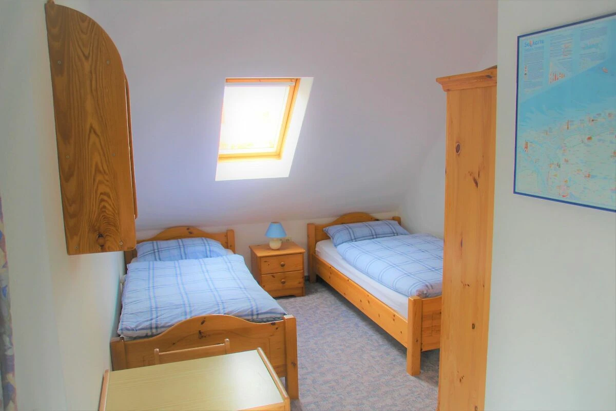 Ein Gäste-WC befindet sich im EG. Im Obergeschoß befinden sich 2 Schlafräume (1 x 1 Doppelbett und 1 x 2 Einzelbetten) und ein Duschbad mit WC.