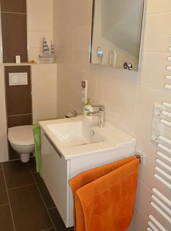 2 Schlafräume (1 x Doppelbett 2,00m x 1,60m (getrennte Matratzen))und 2 Einzelbetten 2,00m x 0,90m) alle mit einer Komforthöhe, ein Schlafraum mit weiterem Sat-TV. Dusche (barrierefrei und mit festem Sitz)/WC und Waschmaschine/- Trockner, Fön und Handtuchtrockner gehören zur gehobenen Ausstattung.