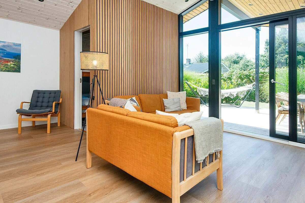 , Küche(Kochherd(2 Kochplatten), Dunstabzugshaube, Kaffeemaschine, Mikrowelle, Kühl-/Gefrierkombination), Wohn-/Schlafzimmer(TV(dänische Fernsehsender), DVD-Spieler, Hochstuhl, Chromecast), Schlafzimmer(Doppelbett, Babybett), Schlafzimmer(Doppelbett), Schlafzimmer(2x Einzelbett), Badezimmer(Waschbecken, Dusche, Toilette), Heizung(elektrisch), Terrasse, Gartenmöbel, Spielgeräte, Luft-Luft-Wärmepumpe