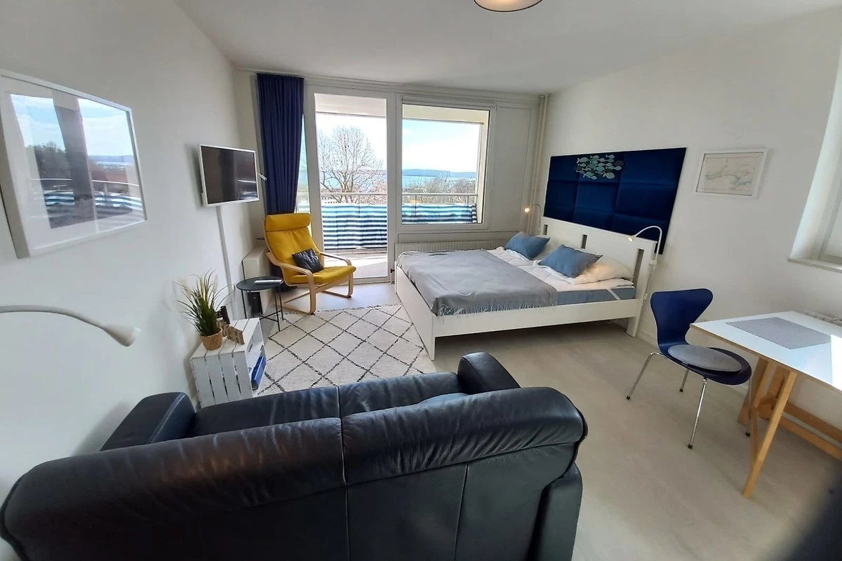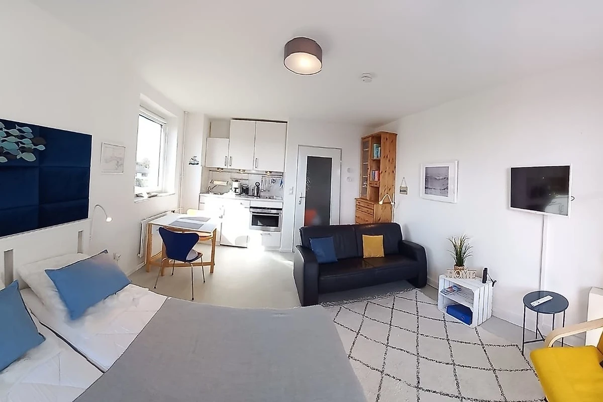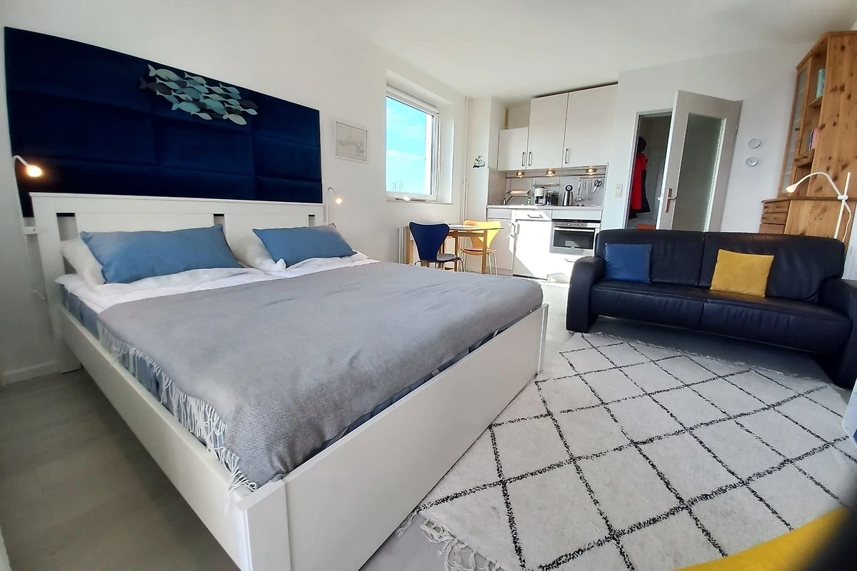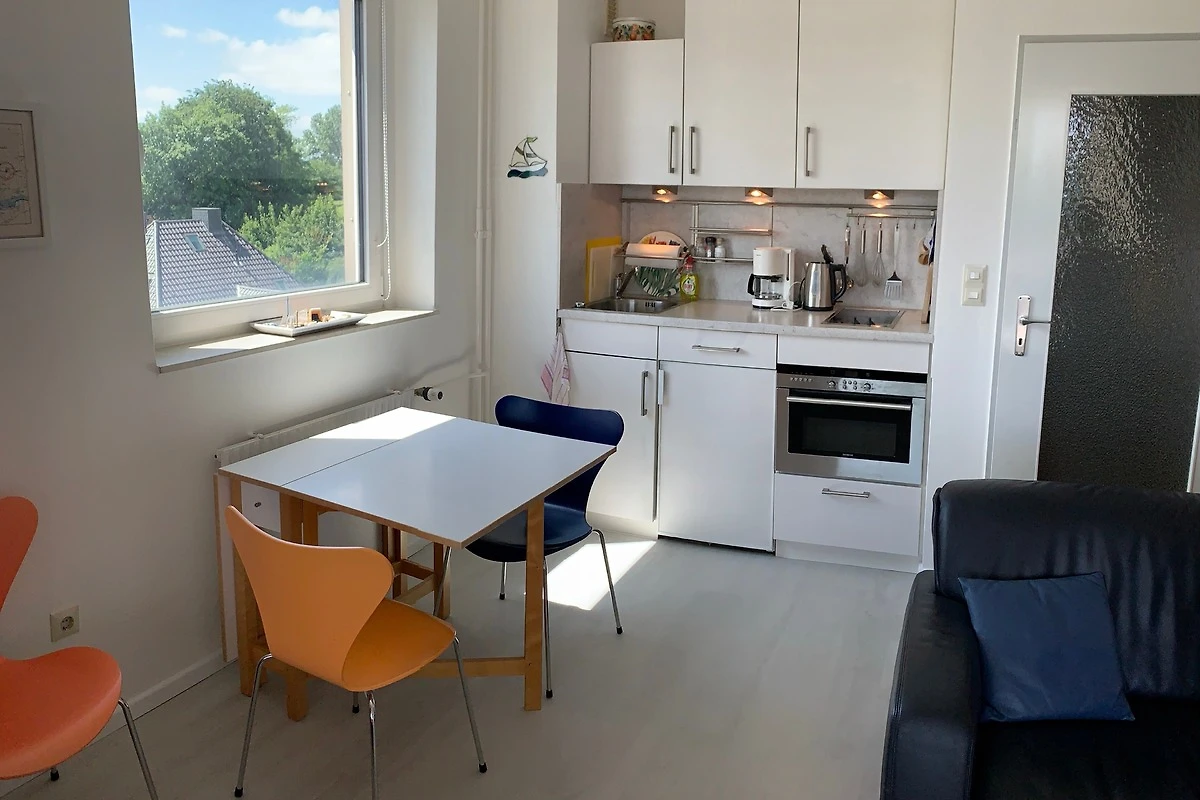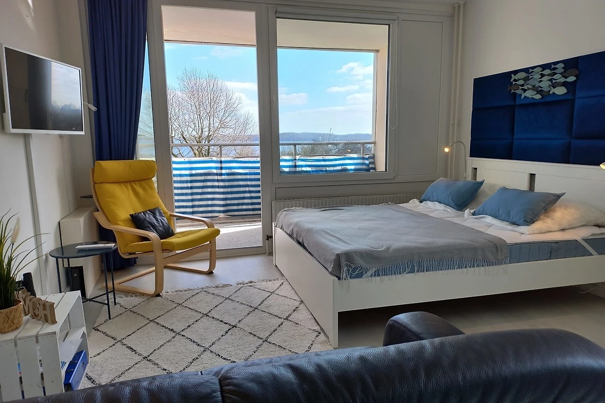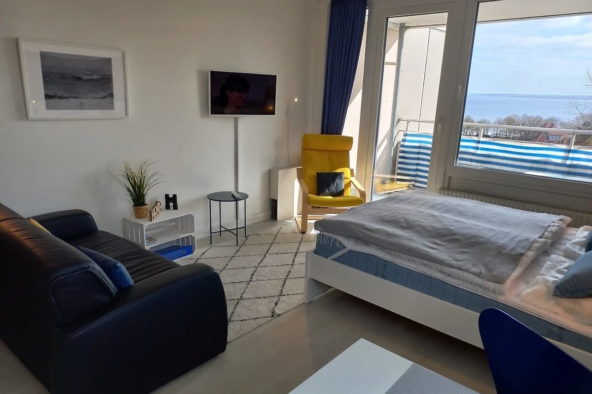Die Ferienwohnung "Kystenblick " befindet sich im Hochhaus "Rendsburger Str." in zentraler Lage. Das Erreichen des Apartments über einen Fahrstuhl und wenige Treppenstufen sowie ein eigener Tiefgaragenstellplatz (Durchfahrtshöhe 1,85m) sorgen für ein entspanntes Ankommen. Ein Abstellraum für Fahrräder lädt Sie dazu ein, Eckernförde und seine Umgebung auch aktiv zu erkunden.