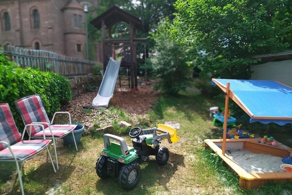 Im Haus befinden sich noch andere Wohnungen. Für alle Hausbewohner steht eine grosszügige Terrasse und Garten mit direktem Blick auf die Kirche zur Verfügung.