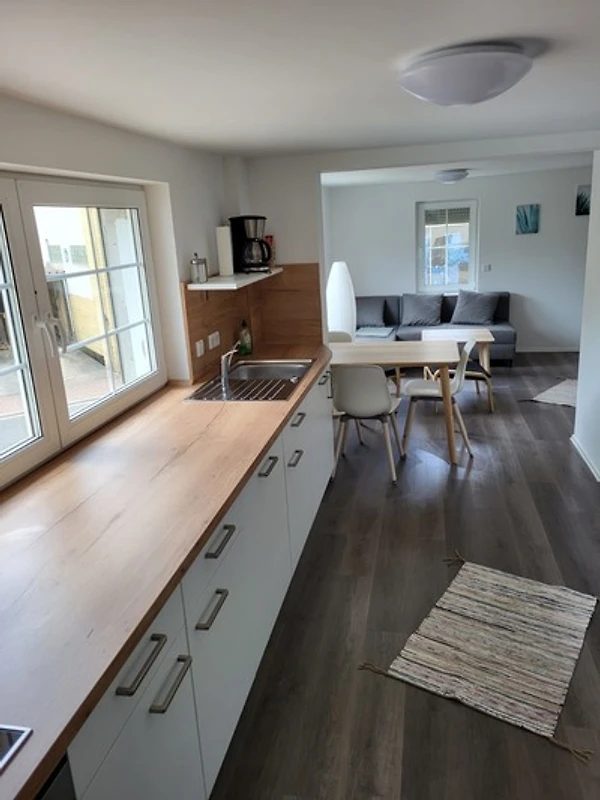 Zur Vermietung steht eine sehr schöne und neu renovierte Ferienwohnung für max. 4 Personen in guter Lage in Knüllwald-Remsfeld. Die komplette Ausstattung und Möblierung ist ebenfalls nagelneu - hierzu zählt: Schlafzimmer 1 mit TV, Bett 1,80 x 2,00m, Nachttischschrank und Kommode zum Verstauen ihrer Kleidung. Schlafzimmer 2 mit TV, Bett 1,40 x 2,00m, Nachttischschrank und Kommode zum Verstauen ihrer Kleidung. Die neue Markenküche bietet reichlich Platz und ist voll ausgestattet (u.a. Herd, Spülmaschine, Kühlschrank, Kaffeemaschine und Toaster, etc.) sowie mit einem Tisch + 4Stühlen - ein weiteres TV-Gerät im Bereich des Wohnzimmers lädt zum Entspannen auf dem Schlafsofa oder dem Fernsehsessel ein. Das neue Bad mit Dusche, Waschbecken und Toilette besticht durch Eleganz und hochwertige Ausstattung.