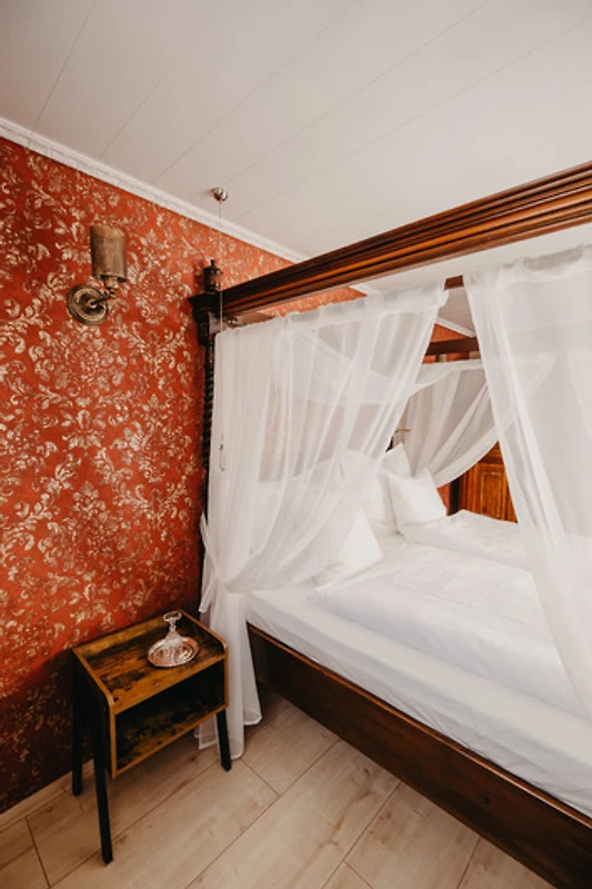 Schlafen wie auf Wolken, ein Bett für Könige. Für ein königliche Schlafgefühl sorgt ein wunderschönes Himmelbett.