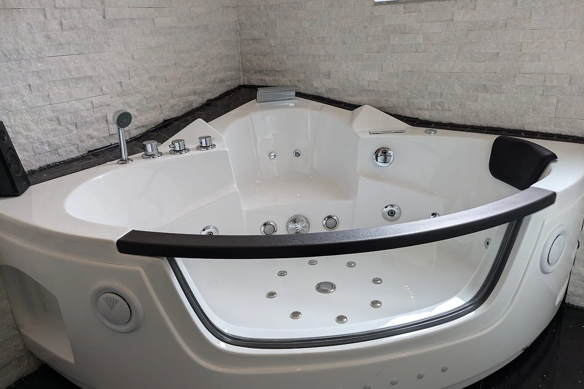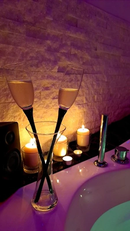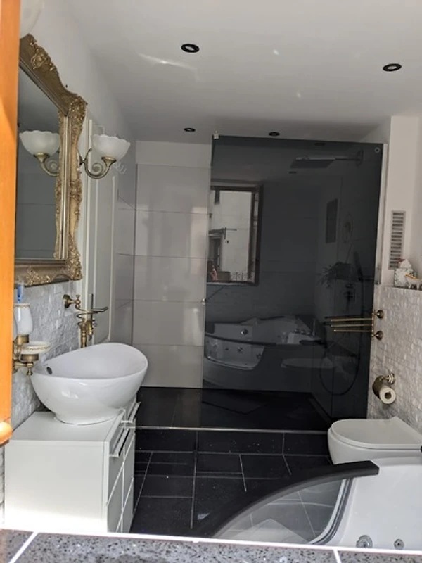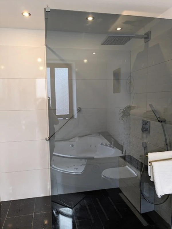 Einrichtung. Geniessen Sie schöne romantische Momente zu zweit in der Wellnessbadewanne mit Whirlpool oder gönnen sie sich eine entspannte Dusche mit Dampf und Massage.