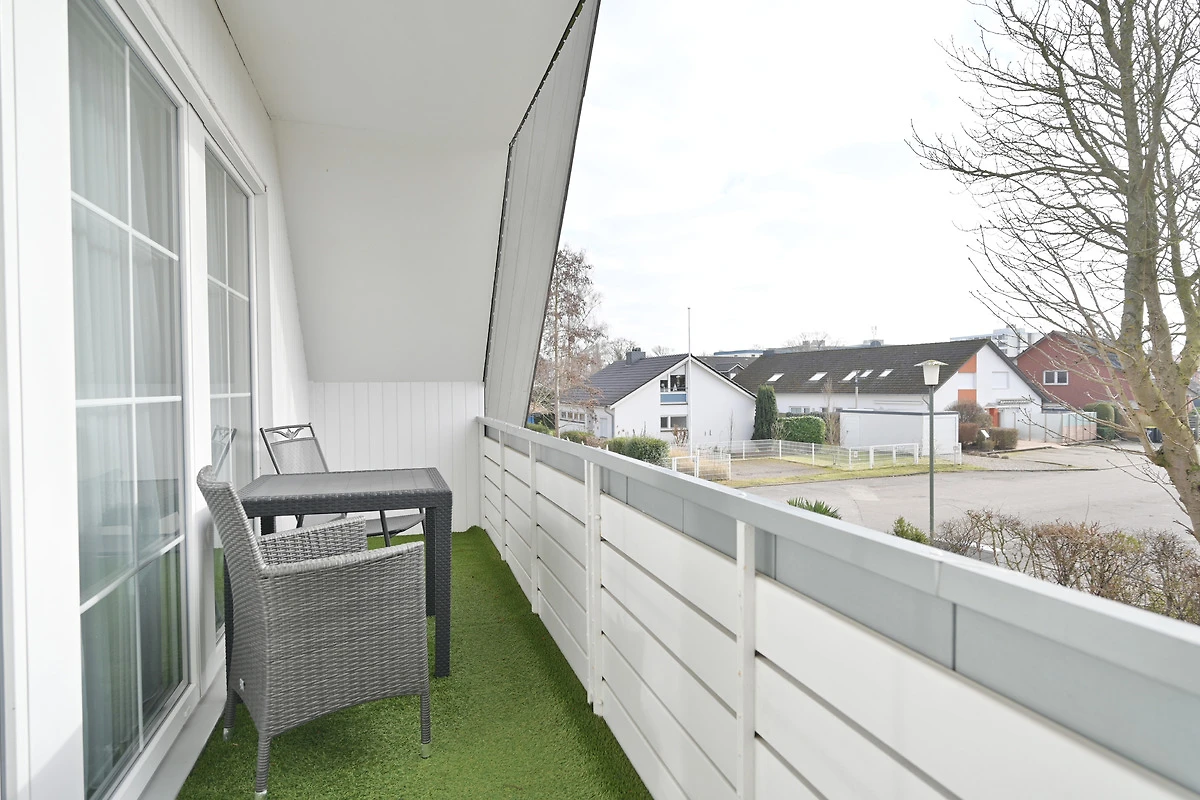 Angrenzend an den Wohnbereich befindet sich der neurenovierte Balkon mit neuen Balkonmöbeln was zum Verweilen einlädt.
