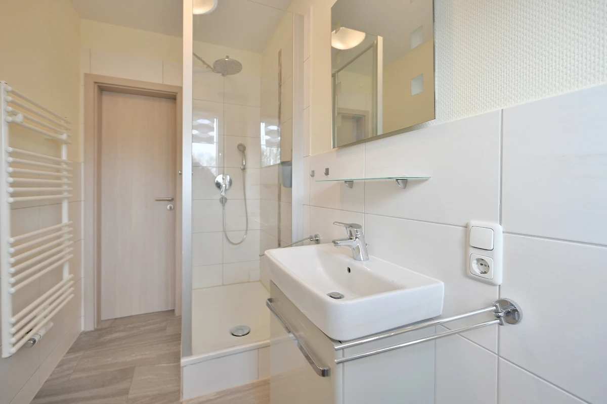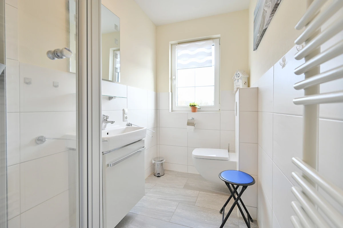 Das Badezimmer verfügt über ein Aussenfenster zum Lüften und wurde im Jahr 2017 neu renoviert und besteht aus einer Dusche mit WC.