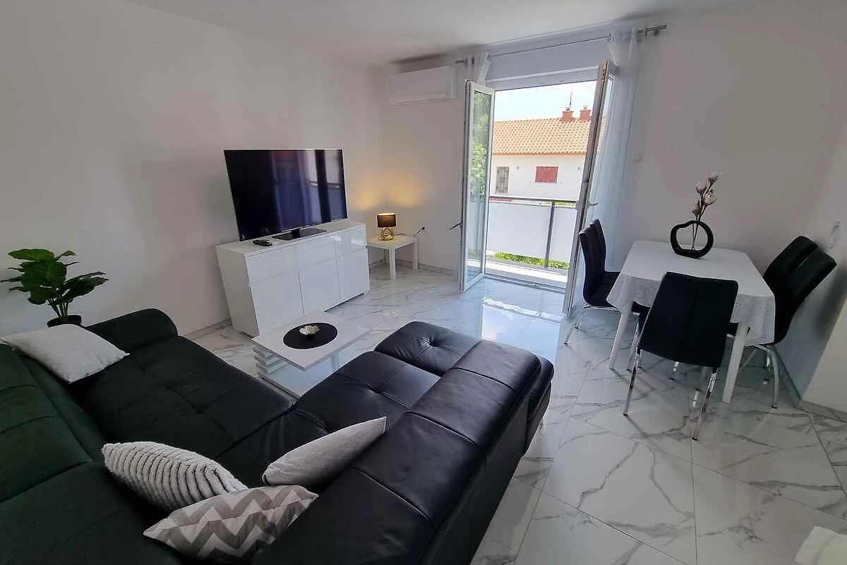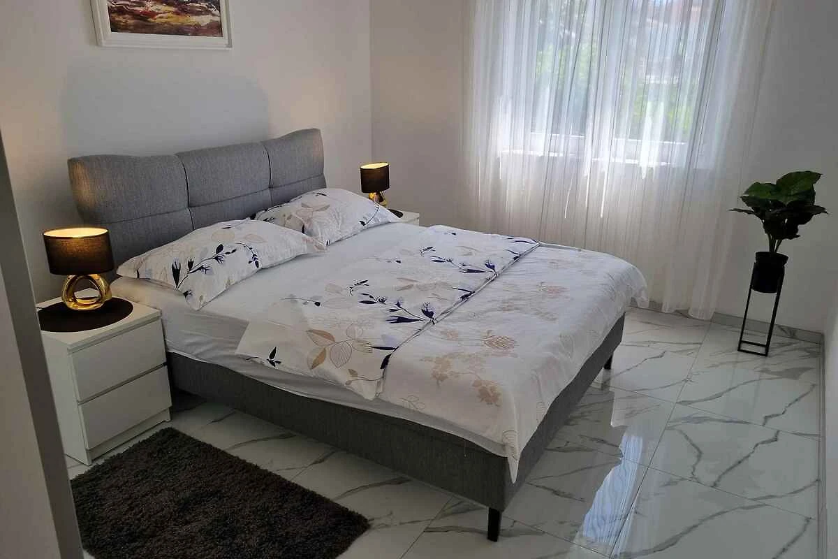 Crikvenica. Der Vermieter wohnt nicht im Haus oder auf dem Grundstück. Die Zufahrt erfolgt über eine Nebenstrasse (asphaltiert). Parkplatz (für 1 Pkw) auf der Strasse vor dem Haus.
