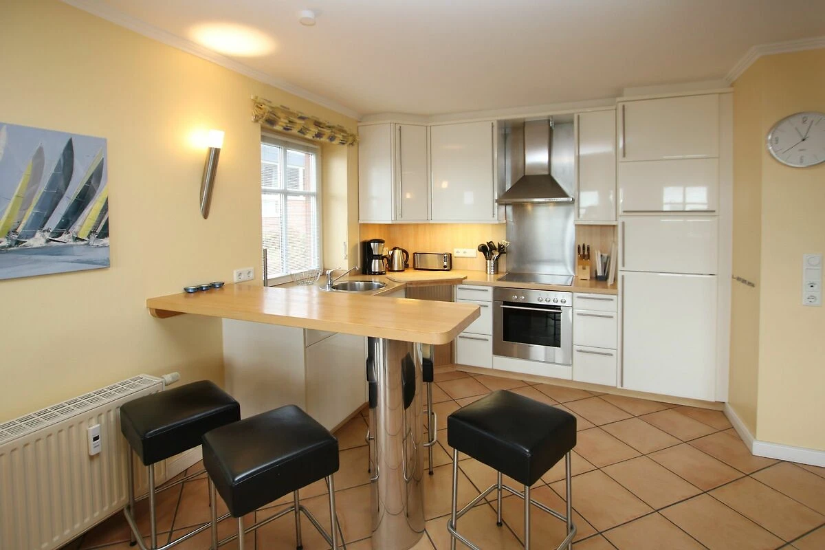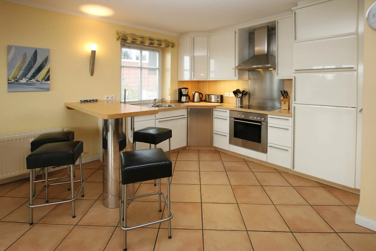 Die offene KÜCHENECKE ist zusätzlich mit einem Bartresen ausgestattet.