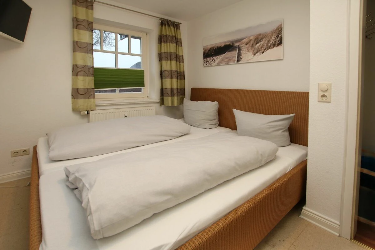 Die lichtdurchflutete Wohnung Nr. 2 im Hochparterre des ruhig gelegenen Hauses bietet 2 Erwachsenen ausreichend Platz für einen wunderschönen Urlaub. Das hell gestrichene Schlafzimmer ist mit Korkboden ausgelegt, verfügt über einen geräumigen Einbauschrank, TV und ein Doppelbett. Das Wohnzimmer, das mit Amtico ausgelegt ist, hat eine Schlafcouch mit vollwertiger Matratze. Zur Couch gibt es 2 passende Hocker. Die Küchenzeile ist mit Backofen und Mikrowelle sehr gut eingerichtet. Dazu gibt es einen großzügigen Essplatz für 4 Personen. Im Souterrain befindet sich das Badezimmer mit Dusche, WC und geräumigen Waschtisch. Außerdem ist das Bad mit einer Fußbodenerwärmung ausgestattet. Durch das Öffnen der Wohnzimmertüre kann der Treppenabgang abgesperrt werden. Der Südbalkon hält einen Tisch und Stühle, der Westbalkon einen Strandkorb für sie zur Erholung bereit. Zur medialen Unterhaltung steht Ihnen je ein Fernsehgerät im Wohnzimmer und im Schlafzimmer zur Verfügung. Ihren Laptop oder Smartphone können Sie gerne mit unserem kostenlosen WLAN verbinden. Zum Zentrum sind es nur wenige Gehminuten, zum Strand ca. 400 m und der Supermarkt liegt nur 200 m entfernt. Im Gemeinschaftskeller können Sie eine Münzwaschmaschine und ein Münztrockner benutzen