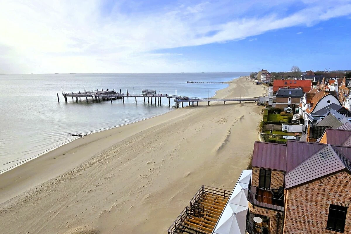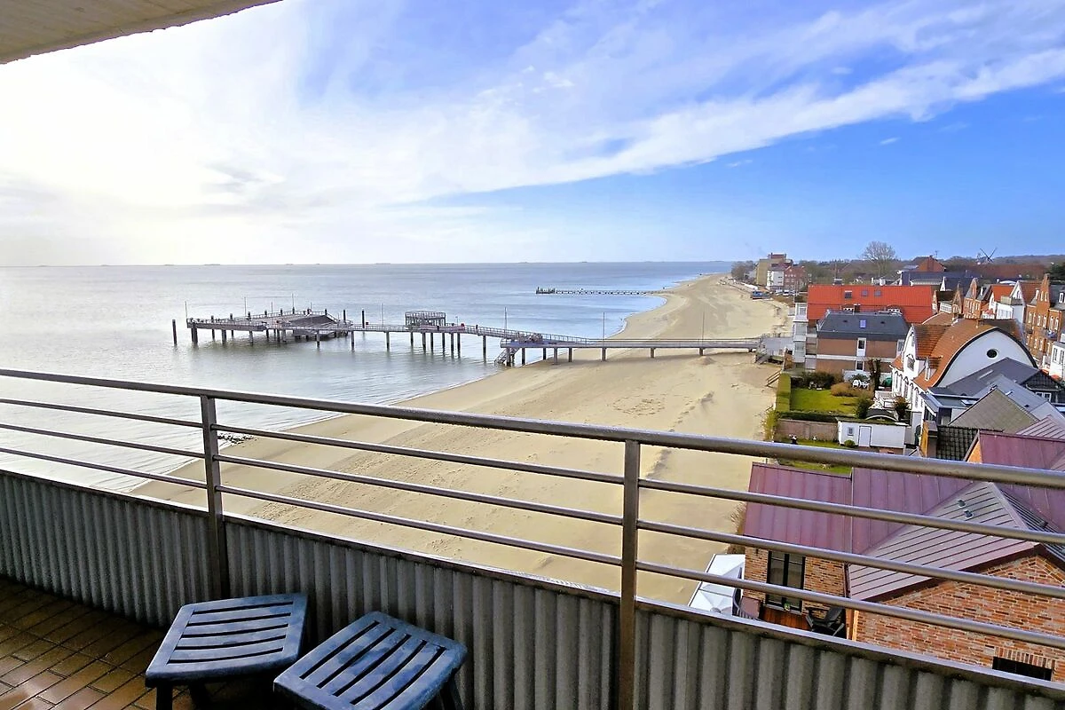 Fahrstuhl geht nur bis zur 5 Etage, 1 Etage muss übers Treppenhaus gegangen werden. Die Wohnung liegt in direkter Strandlage und hat einen sagenhaften Blick aufs Wasser und auf den Strand. Zum Wellenbad sind es ca. 10 bis 15 Minuten Fußweg.