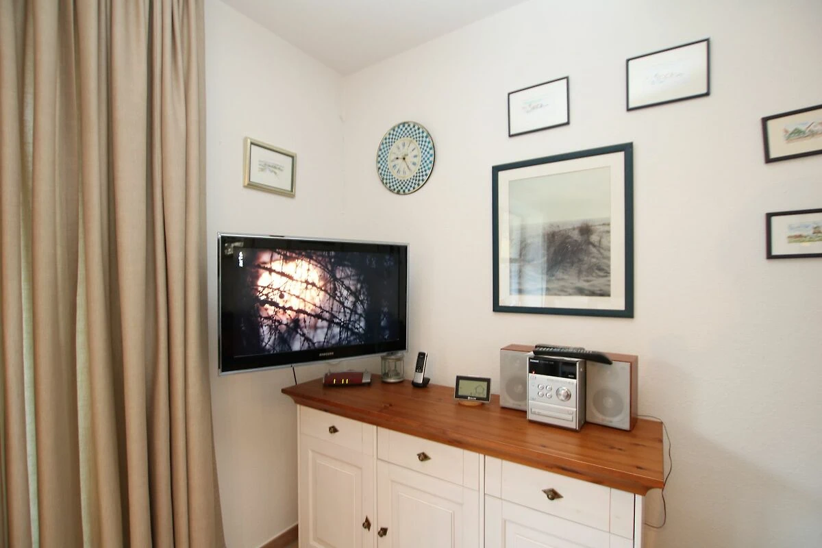 Ferienwohnung in Wyk auf Föhr, Gmelinstr. 28a, Whg. 42 - Südstrand - (ca. 42 qm)2-Zimmerwohnung im Erdgeschoß mit Westterrasse: WOHNZIMMER mit Couch, Couchtisch, Esstisch mit 4 Stühlen und KÜCHENZEILE mit Herd und Kühlschrank mit Eisfach, Geschirrspüler, Backofen und Mikrowelle. FLUR mit eingebautem Kleiderschrank. BAD mit Dusche und WC. SCHLAFZIMMER mit 2 Einzelbetten (0,80x2,00) und Kommode. Fahrradständer u. Parkplatz sind am Haus. Das Haus ist umgeben von einem Naturgrundstück (Wiese). Einkaufsmöglichkeiten in der Nähe. Zum Strand sind es nur wenige Minuten, zum Zentrum, Wellenbad und Kurmittelhaus ca. 30 - 45 Min. Waschmaschine und Trockner auf Münzbasis stehen im Keller des Hauses. AB 2022 keine Haustiere mehr erlaubt.