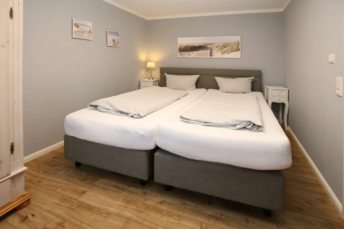 Die Wohnung ist komplett gefliest. Zum Südstrand ca. 400 m und zum Kurmittelhaus und Erlebnisbad und Innenstadt ca. 1200m. Münzwaschmaschine und Trockner im Keller. Gemeinschaftssauna (4 Parteien) im Keller.