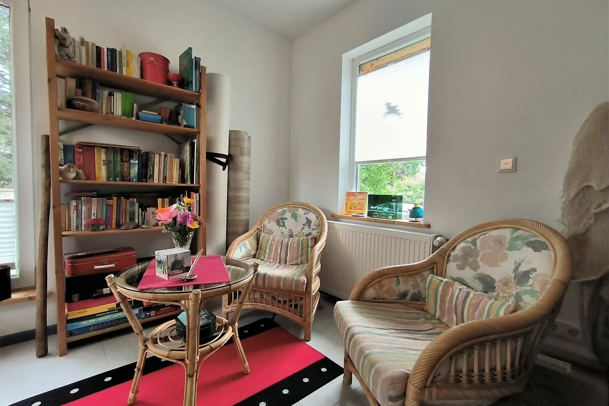 Im Vorgarten besteht die Möglichkeit, Gartenstühle aufzustellen und den hauseigenen Grill zu nutzen. Eine Waschmaschinennutzung auf Anfrage möglich. Die Unterkunft liegt direkt an zwei Fernwanderwegen, dem Ochsenweg und der Pilgerroute.