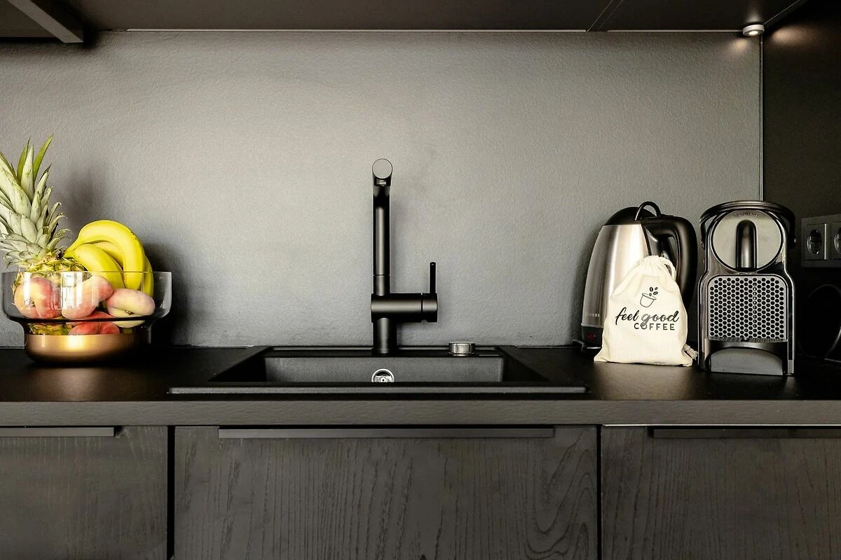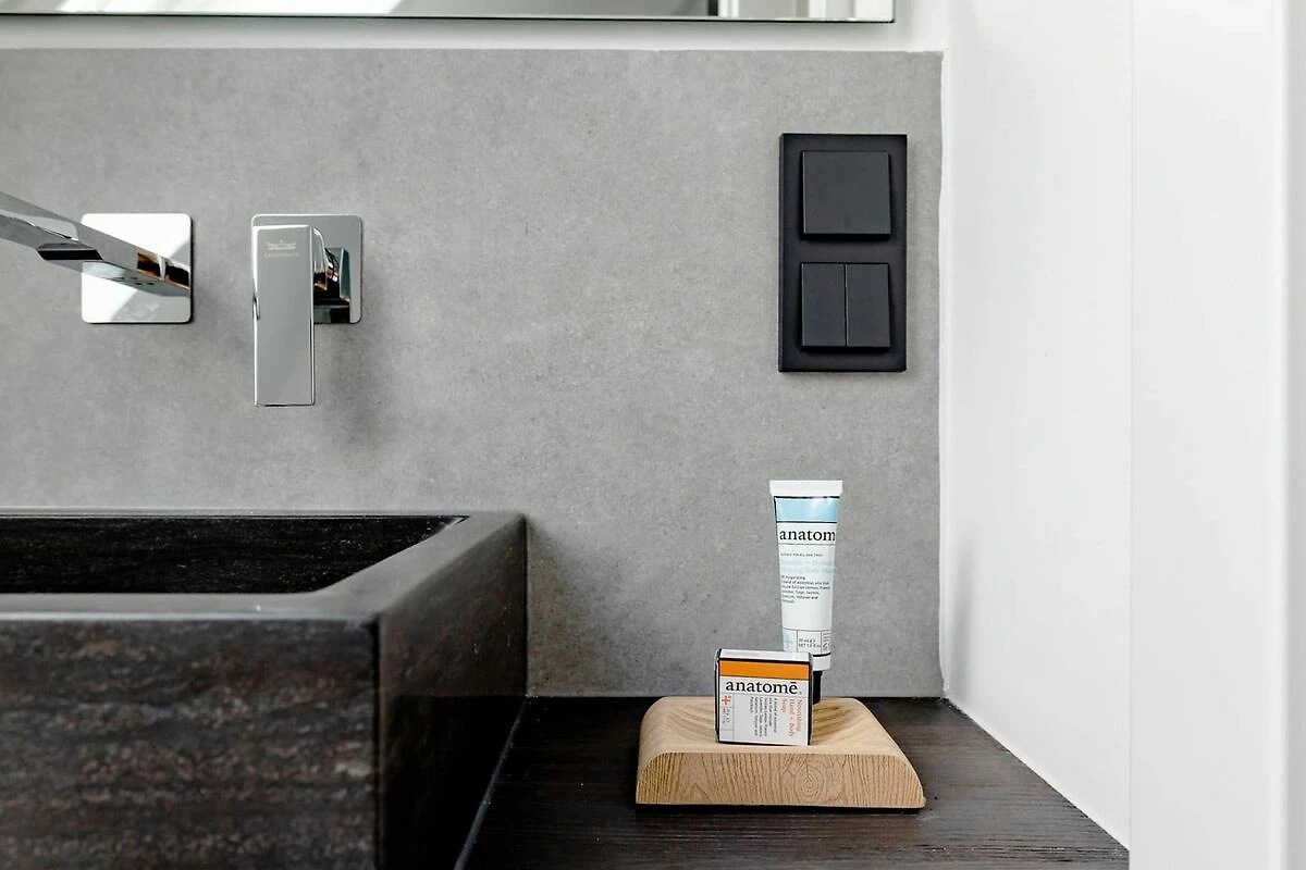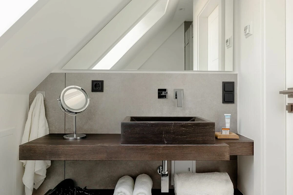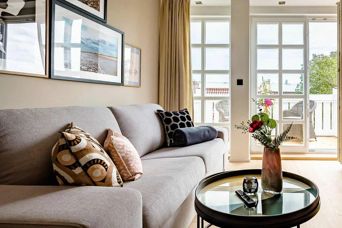 Das 38 qm grosse und renovierte Apartment lädt zu einem Wohlfühlurlaub ein: lichtdurchflutete Räume, hohe Decken und modernes Design spiegeln den Stil der Wohnung wider. Eines der Highlights ist der charmante Balkon, von dem Sie den Sonnenaufgang in Westerland beobachten können. Im Schlafzimmer erwartet Sie ein hochwertiges Boxspringbett für erholsame Nächte. Ein zusätzliches Schlafsofa befindet sich im Wohn- und Essbereich. Gekocht wird in der edlen Küche, ausgestattet mit Geräten von Top-Markenherstellern wie Gaggenau und Miele. Dank eines kleinen Starterpakets für Bad und Küche, können Sie ganz entspannt ankommen und sich in Ruhe einrichten. Ein richtiges Luxusgefühl bietet die Regendusche im modernen Badezimmer und für einen kuscheligen Aufenthalt, auch im Winter, dürfen Sie sich auf Fussbodenheizung im gesamten Apartment freuen.