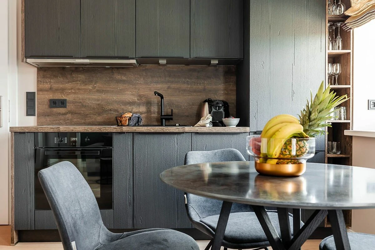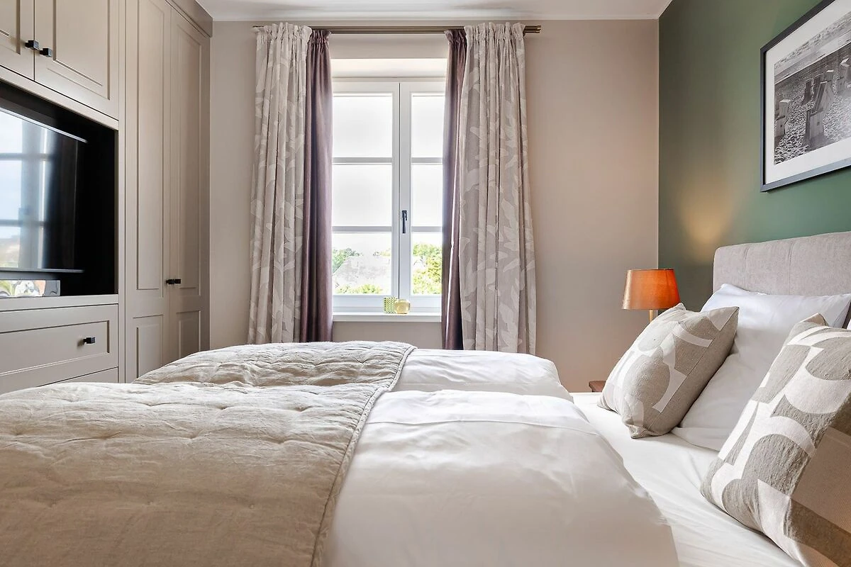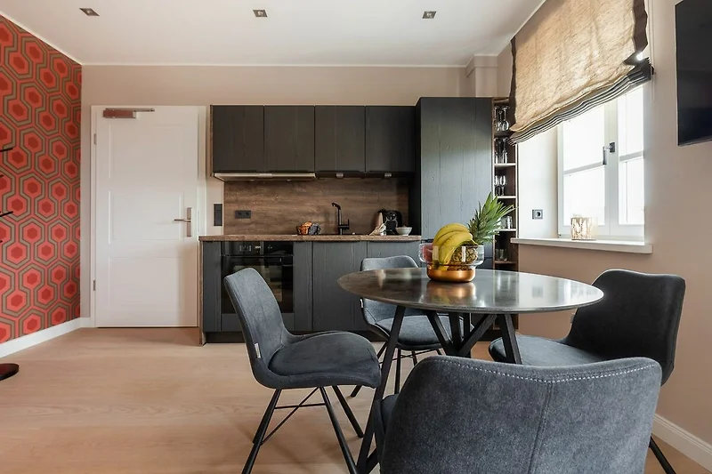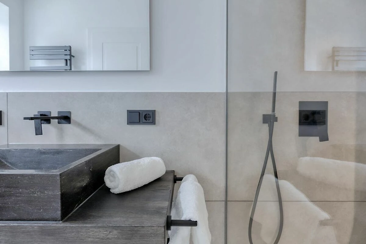 Ein Ort zum Wohlfühlen und Ankommen: lichtdurchflutete, helle Räume treffen auf modernes Design und hochwertige Ausstattung. Vom Wohn- und Essbereich gelangen Sie direkt auf den charmanten Balkon, welcher nach Westen ausgerichtet ist. Hier können Sie an warmen Sommernächten den Sonnenuntergang bei einem gemütlichen Glas Wein mit Ihren Liebsten geniessen. Das Schlafzimmer ist mit einem grossen Boxspringbett ausgestattet. Ein weiters Highlight der Ferienwohnung ist die angenehme Regendusche, die Ihnen nach einem ereignisreichen Tag schöne Moment der Entspannung bietet. Im Wohn- und Essbereich befindet sich ein Schlafsofa sowie der Zugang zum Balkon. Die Küche ist vollends ausgestattet mit Geräten von Top-Markenherstellern wie Gaggenau und Miele sowie einem kleinen Starterpaket an Geschirrtüchern und Co., ebenso fürs Bad. Das gesamte Apartment hat Fussbodenheizung, so bleibt es auch im Winter kuschelig warm.