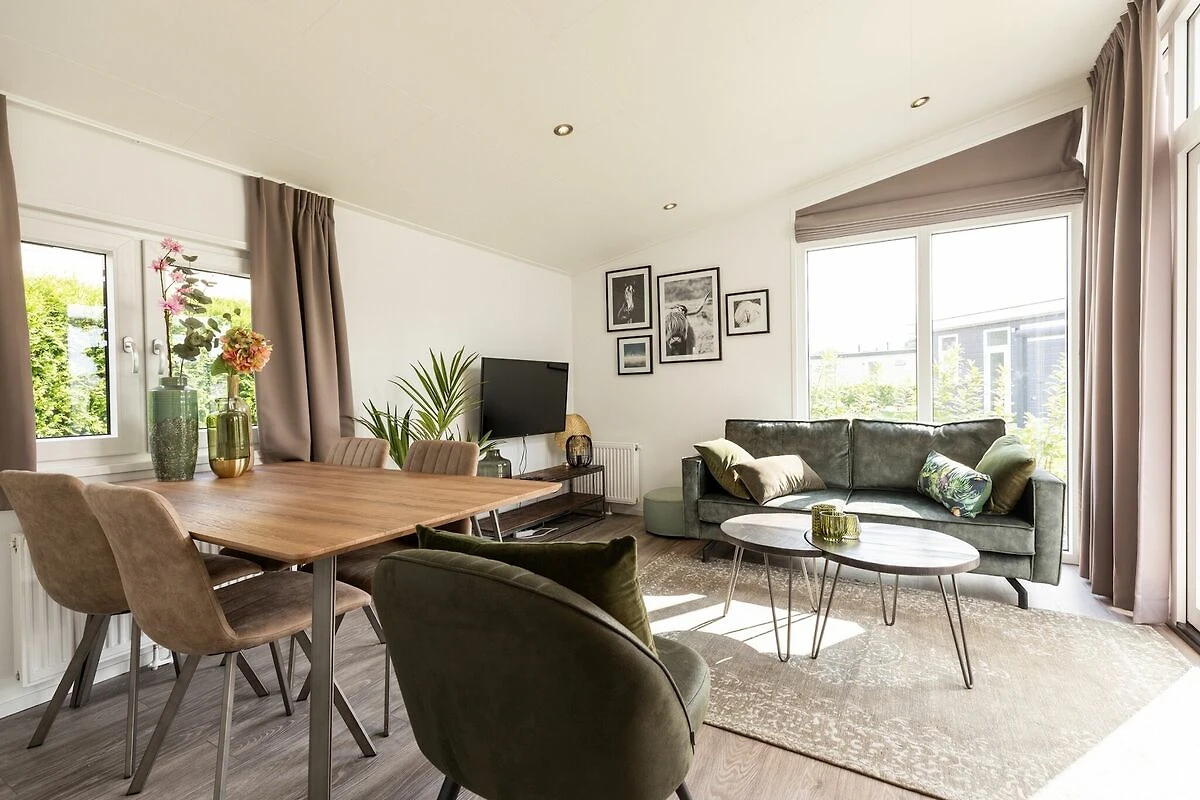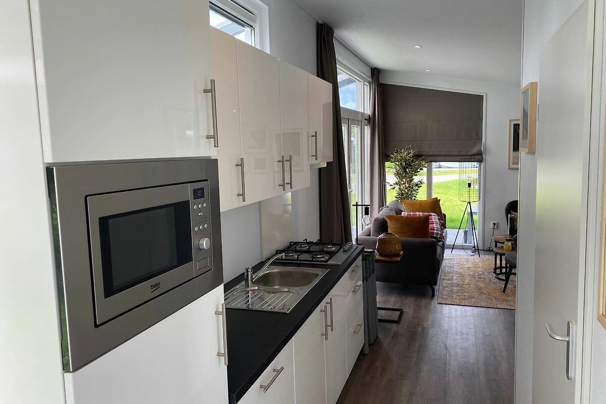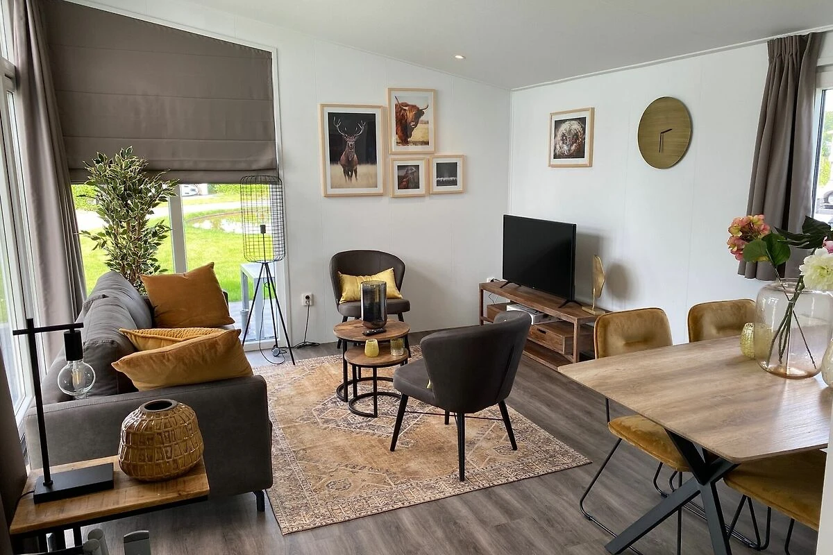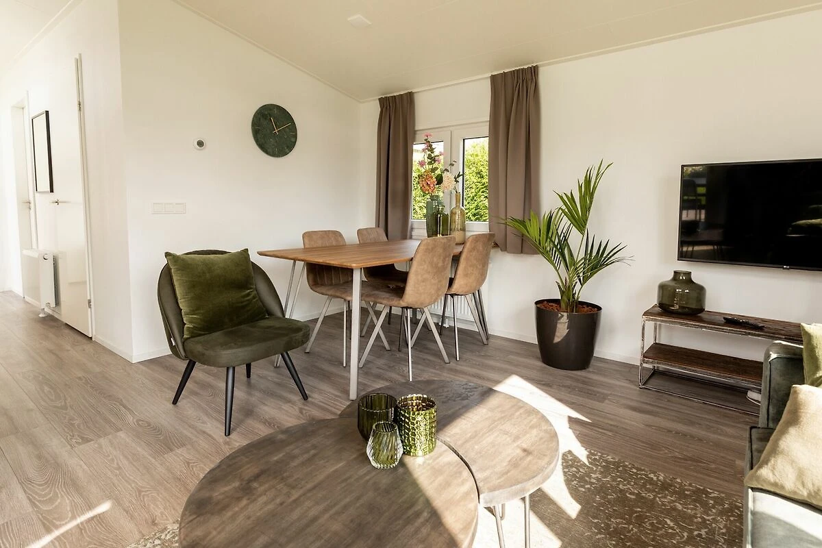 Dieses stilvolle Chalet ist komplett möbliert und mit allen Annehmlichkeiten ausgestattet. Die großen Fenster im Wohnzimmer mit offener Küche vermitteln ein großzügiges Gefühl. Sie verfügen über zwei schöne Schlafzimmer mit ausreichend Stauraum und bequemen Boxspring-Betten für 1 oder 2 Personen. Auch die Natur ist hier sehr angenehm. Der Garten hat eine Terrasse und Gartenmöbel.