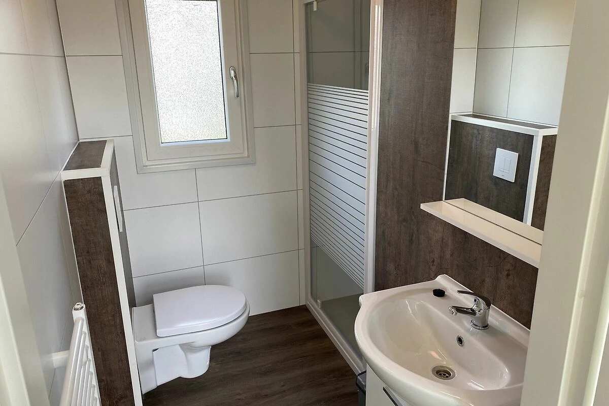 Parterre: (Wohnzimmer(TV), offene Küche(Wasserkocher, Kochherd, Kaffeemaschine, Kombi-Mikrowelle, Spülmaschine, Kühlschrank(+ Gefrierfach)), Schlafzimmer(Doppelbett), Schlafzimmer(Doppelbett oder 2 Einzelbetten), Badezimmer(Dusche, Waschbecken, Toilette))