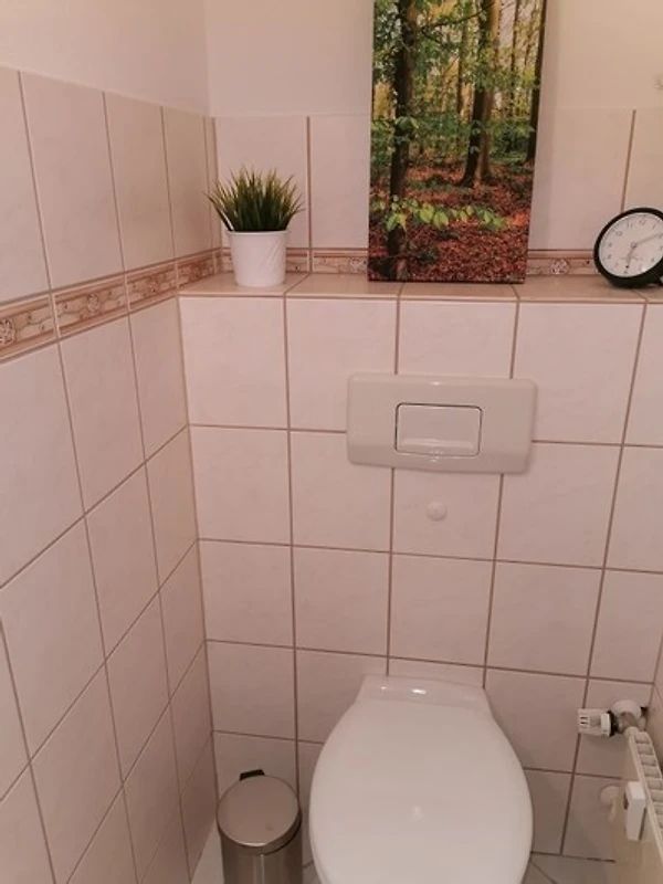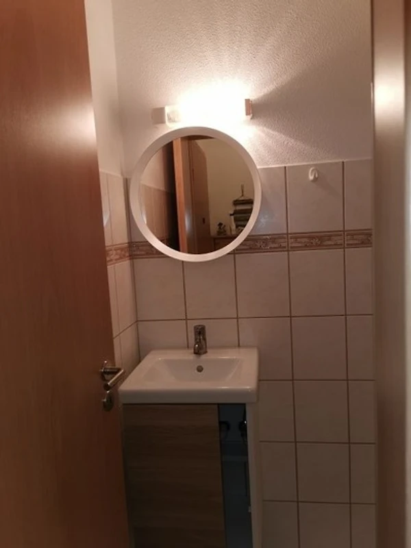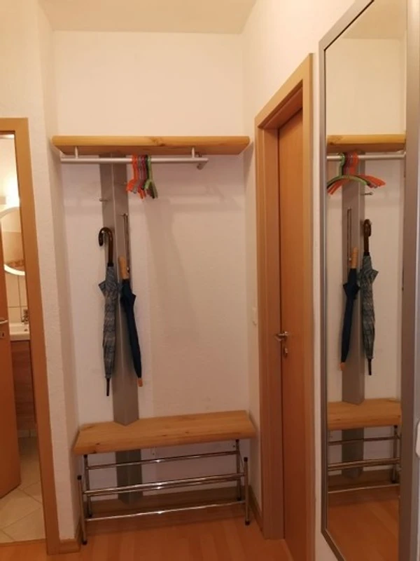 Im Badezimmer steht eine geräumige Dusche ein Fön sowie ein Waschbecken zur Verfügung. Das WC ist in einem separaten Badezimmer untergebracht. Im Flur finden ihre Jacke und Schuhe ihren Platz. Eine Waschmaschine und ein Trockner befindet sich in einem Gemeinschaftsraum im Haus und können gegen Gebühr genutzt werden.