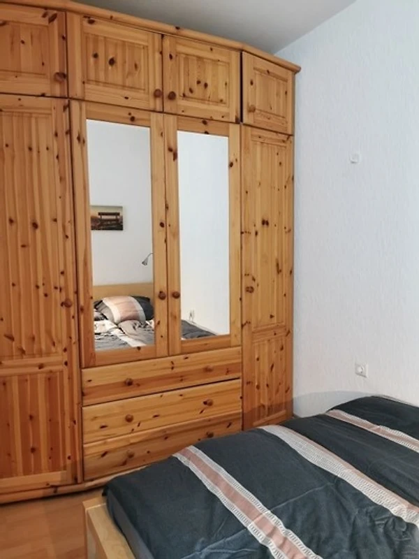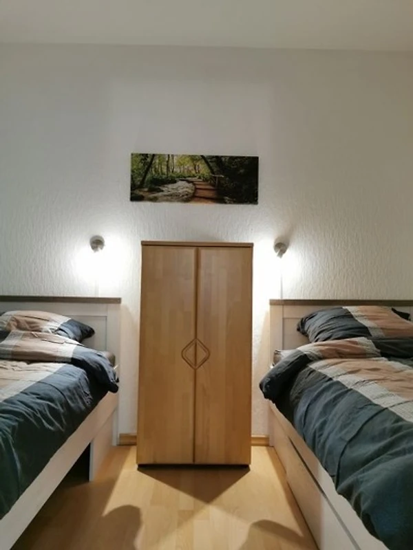Ein Schlafzimmer ist mit einem 1,40 m breiten Bett, einem grossen Schrank sowie einem Fenster ausgestattet. Das andere Schlafzimmer ist mit 2 90 cm Betten mit einer Kommode ausgestattet.