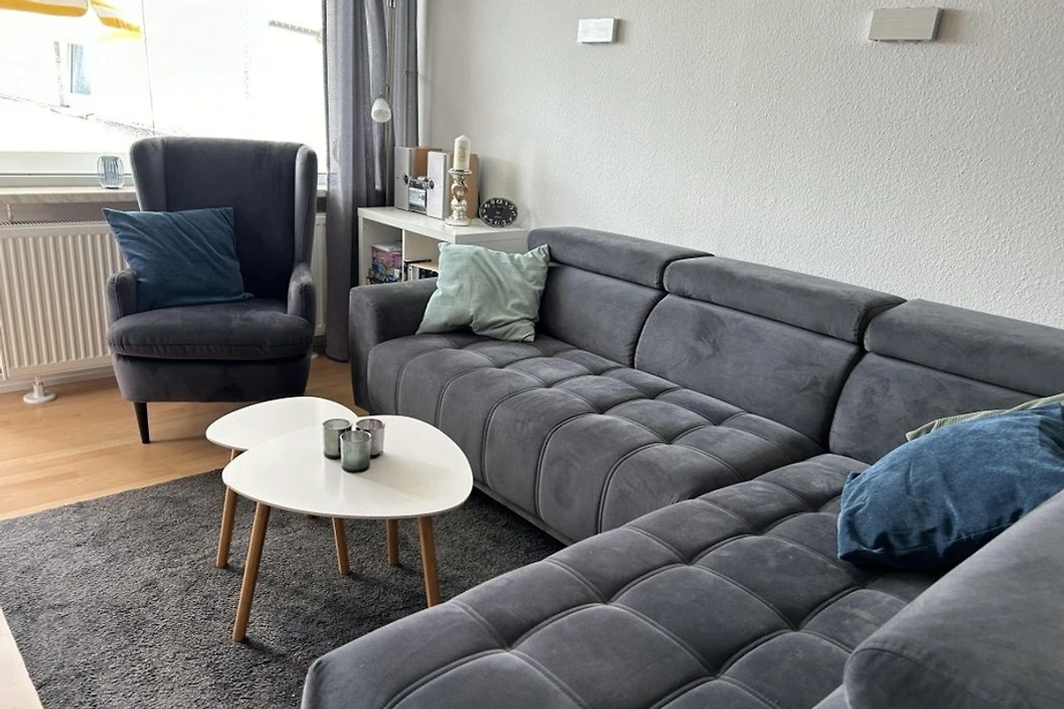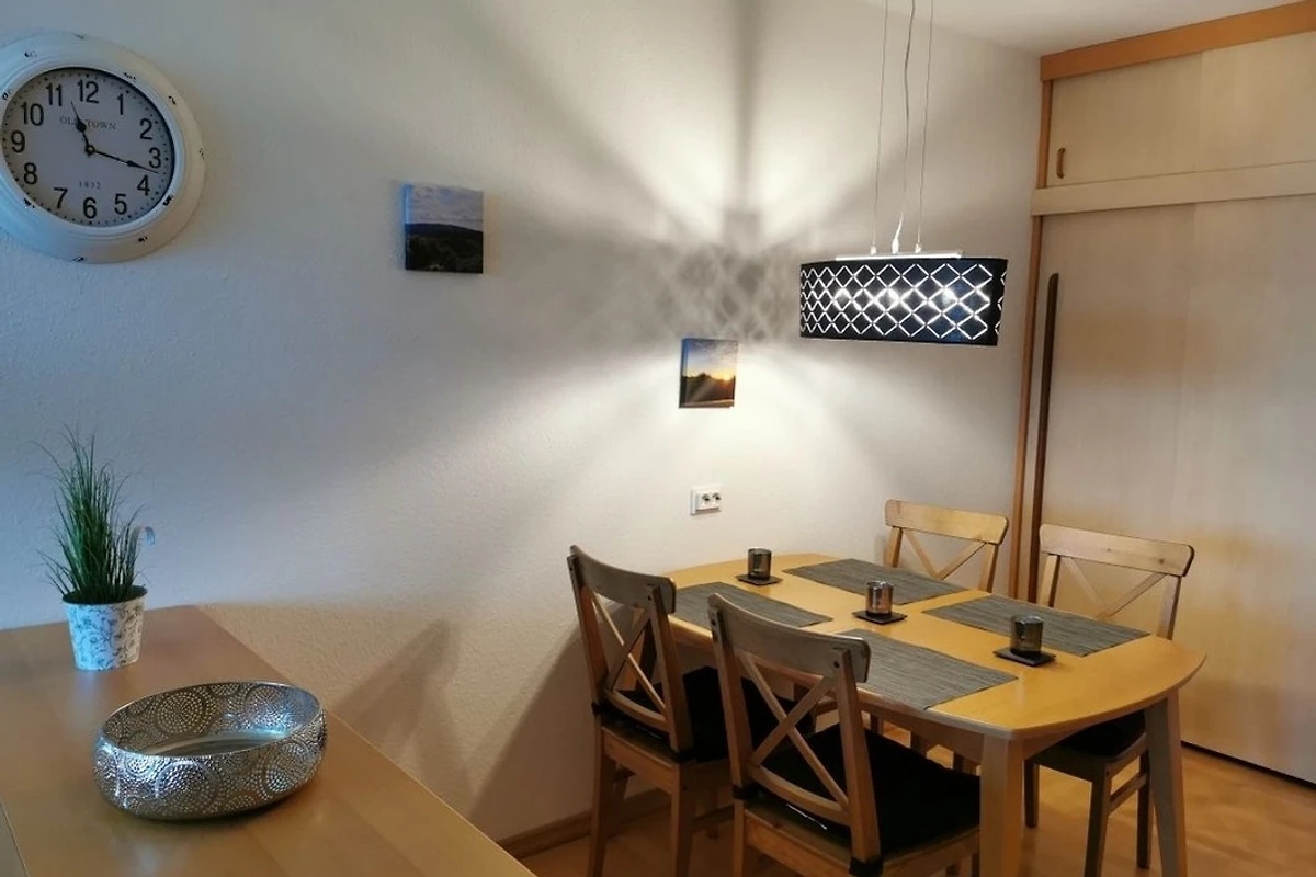 Die gemütlich eingerichtete Ferienwohnung ist hell und lädt zu einem schönen Urlaub ein. Von modernen Lampen bis zu gemütlichen Betten lässt die Wohnung kaum Wünsche offen. Im Wohnzimmer befindet sich neben einer Sofagarnitur der Flachbildfernseher. Das bequeme Esszimmer und die vollausgestattete Küche runden das Angebot ab.