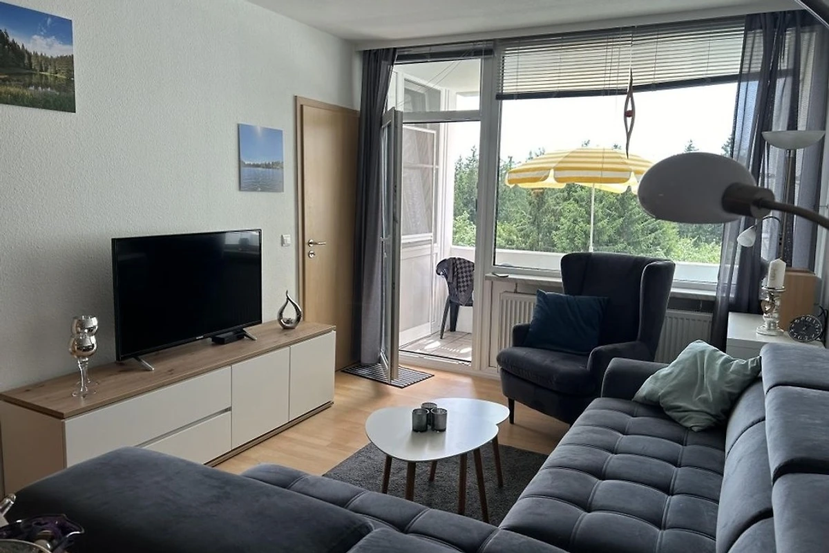 Vom Wohnzimmer können Sie direkt auf den Südalkon gehen, der mit einem schönen Blick auf den Bocksberg lockt.