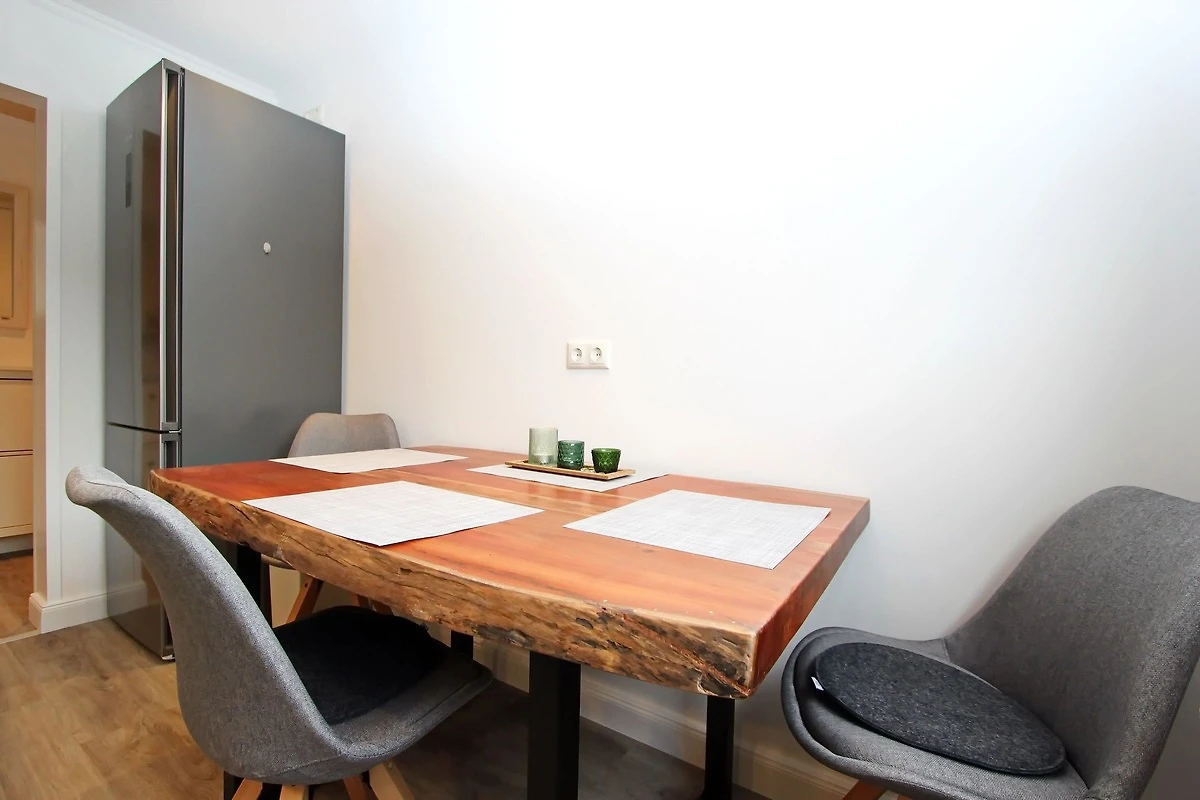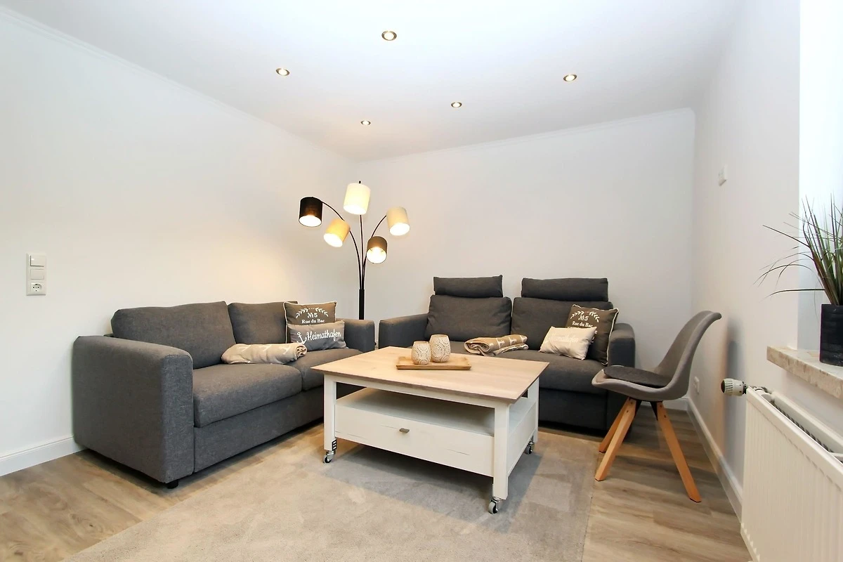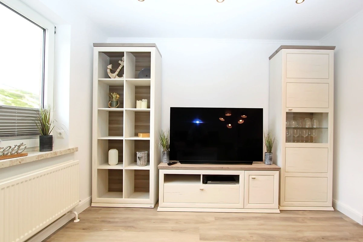 Wohnzimmer mit zwei Couchen (eine davon mit Schlaffunktion), Couchtisch, Vitrinen Schrank, Bücherregal, grosser Smart-OLED-TV, Radio und kostenloses WLAN. Separates Schlafzimmer mit Doppelbett (1,80m x 2,00m), Nachtschränke, Nachttischlampen, grosser Kleiderschrank, der ausreichend Stauraum bietet, Zugang zum Süd-/Westbalkon mit Balkonmöbel.