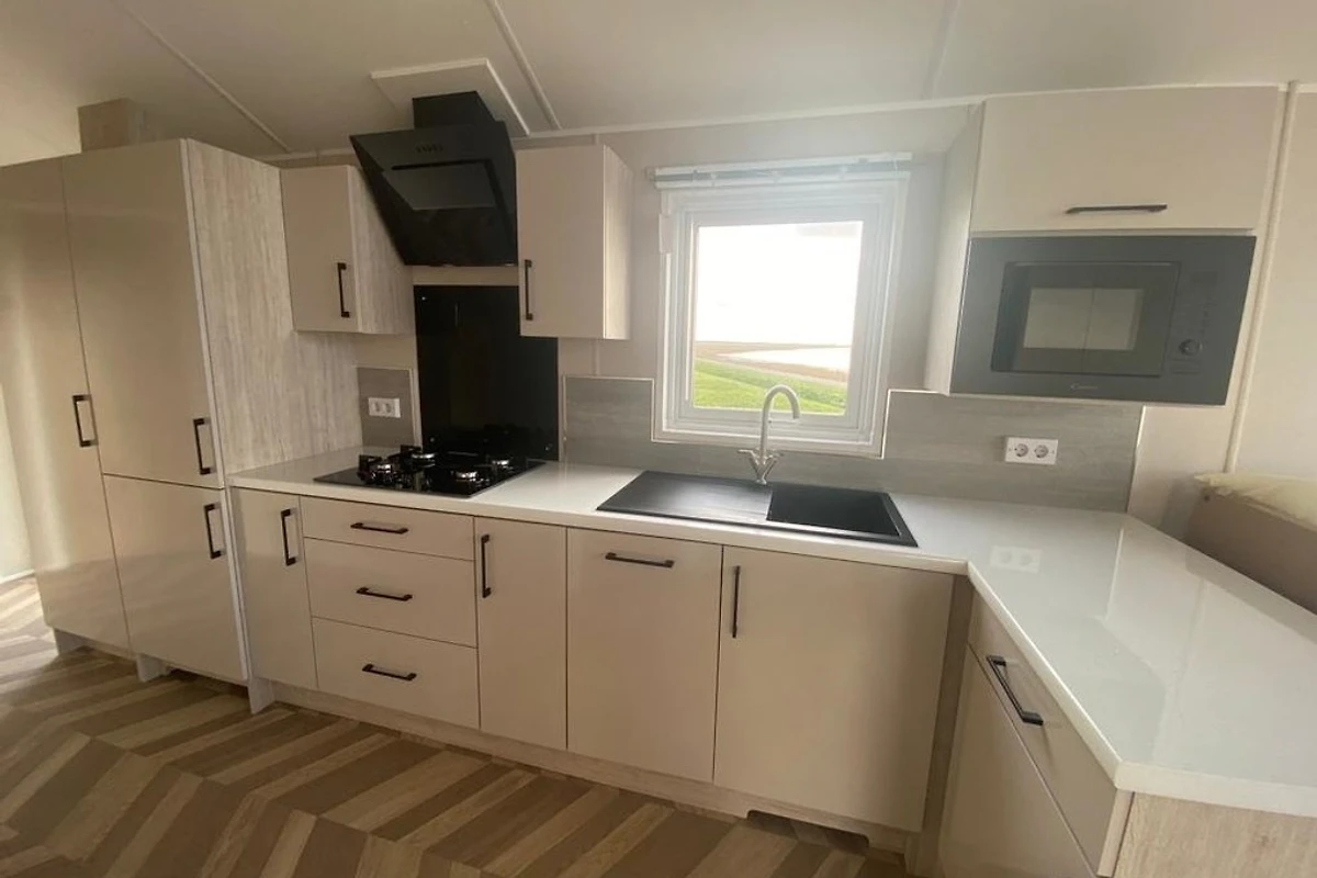 Der Campingplatz liegt direkt am Wattenmeer. Hier stehen 100 Ferienhäuser.