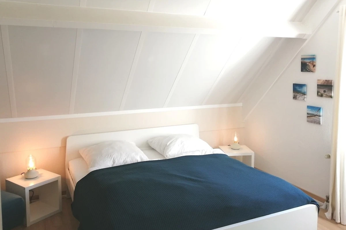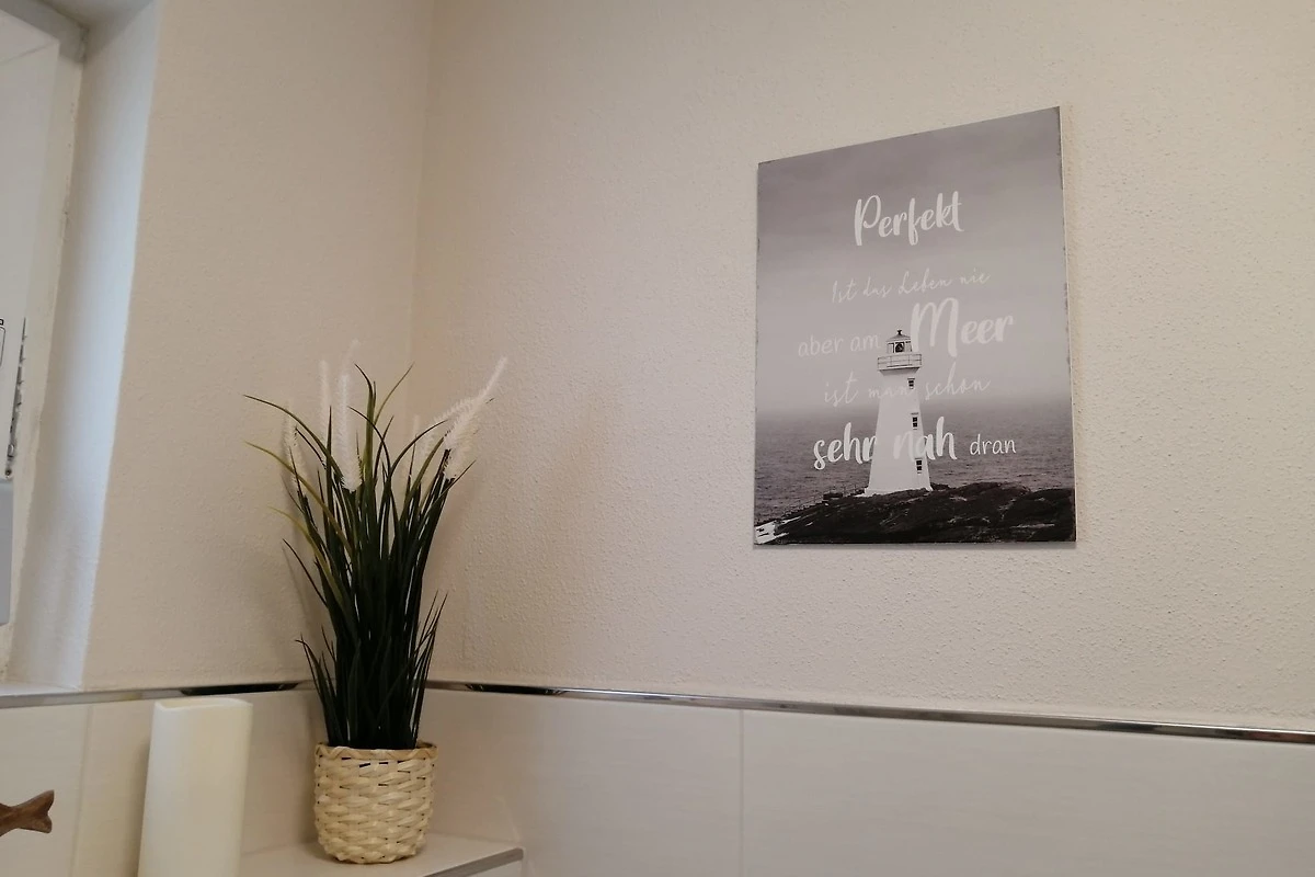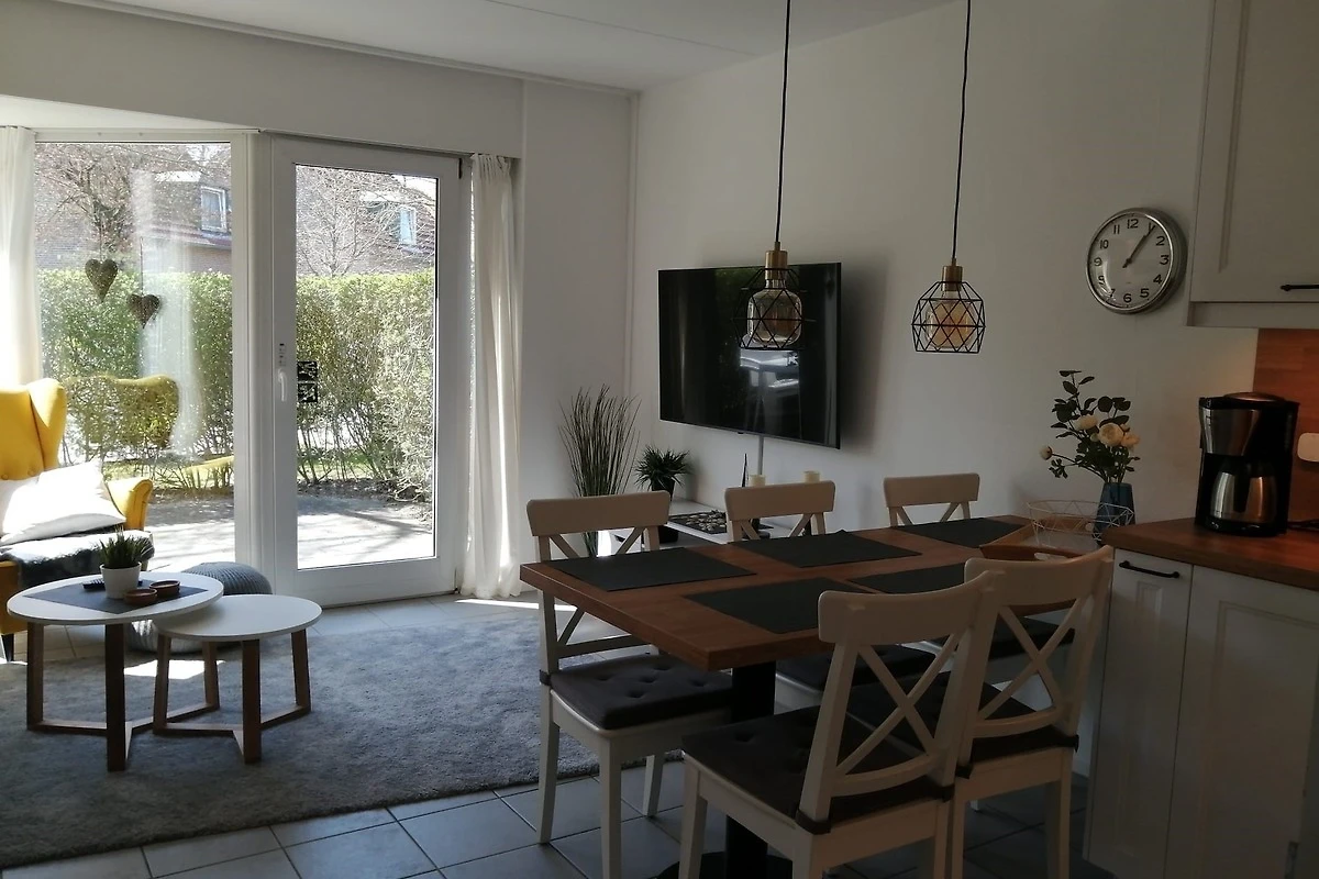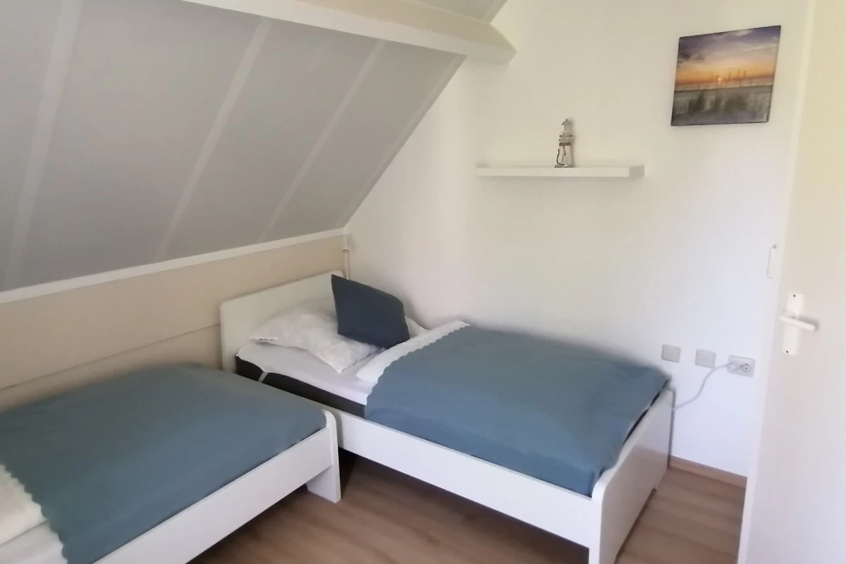 Unser modernes und liebevoll eingerichtetes Ferienhaus bietet auf 65 m² und 2 Etagen Platz für 4 Personen evtl. plus Kleinkind. Das Haus wurde Anfang 2022 komplett renoviert. Dabei wurde das Badezimmer komplett erneuert, die Böden und die Treppe wurden neu gemacht. Des Weiteren verfügt die Ferienwohnung über eine neue Küche inklusive neuer Geräte und neuem Mobiliar. Die Ferienwohnung unterteilt sich in einen grosszügigen Wohn-Essbereich und Badezimmer im Erdgeschoss sowie zwei Schlafzimmern im Obergeschoss. Das Haus verfügt über eine nach Süden ausgerichtete Terrasse, die ans Wohnzimmer angrenzt, auf der es sich wunderbar entspannen lässt. Hier stehen ein Tisch sowie 6 Gartenstühle und ein Grill mit diversem Zubehör zur Verfügung. Das Wohnzimmer ist mit einer Couch und zwei gemütlichen Sesseln ausgestattet, so dass auch 4 Personen ausreichend Platz finden, um auf dem grossen Flachbildschirm spannende Fernsehabende zu erleben. Weiterhin besteht im Wohnzimmer die Möglichkeit gemütliche Spielabende zu verbringen. Diverse Spiele (Spielesammlung, Uno u. ä.) stehen zur Verfügung. Natürlich verfügt das Haus über WLAN, so dass dem Streamen der Lieblingsserie oder dem Anschluss von Spielekonsolen nichts im Wege steht. Hinweis: Die Internetversorgung erfolgt über das Mobilfunknetz, so dass es zu anbieterabhängigen Versorgungsschwankungen kommen kann, auf die der Vermieter leider keinen Einfluss hat! Der gemütliche Essbereich verbindet Wohnzimmer und Küche miteinander und lädt zum gemeinsamen Frühstücken oder leckerem Abendessen ein. Hier finden 4 Personen bequem Platz. In einem separatem kleinen Abstellraum steht als Besonderheit eine Waschmaschine zur Verfügung und natürlich ein Wäscheständer um die Wäsche an der frischen Nordseeluft auf der Terrasse zu trocknen. Die moderne Küche lässt keine Wünsche offen. Hier finden Sie einen Kühlschrank, einen Backofen, einen Herd mit Induktionsfeld, Geschirrspüler und Mikrowelle. Zusätzlich gibt es noch einen Toaster, einen Wasserkocher und eine Kaffeemaschine. Das moderne frisch renovierte Badezimmer verfügt über eine ebenerdige Dusche mit eleganter Glasduschwand, WC, Waschtisch mit grossem Spiegelschrank und diversen Ablagemöglichkeiten, Handtuchtrockner und Fön. Im Obergeschoss befinden sich die beiden Schlafzimmer, die neu mit Laminat ausgestattet sind. Das etwas grössere Schlafzimmer verfügt über ein Doppelbett (180x200), grosser Aufbewahrungskombi, Schlafsessel (evtl. für Kinder, die nicht allein nebenan schlafen wollen) und TV. Bei Bedarf bietet dieses Zimmer genug Platz, um hier ein Kinderreisebett (im Haus vorhanden) zuzustellen. Das zweite Schlafzimmer ist mit zwei Einzelbetten ausgestattet. Dieses Zimmer verfügt als Ablagemöglichkeit ebenfalls über eine geräumige Kommode. Neben dem Eingang befindet sich ein Fahrradständer, an dem Fahrräder abgestellt und angeschlossen werden können. Auf dem Gelände befindet sich ein Hartgummiplatz, der für sportliche Aktivitäten wie Fussball, Handball, Basketball oder Ähnlichem zur Verfügung steht. Weiterhin befinden sich auf dem Gelände viele verschiedene Spielplätze, die alle Kinderwünsche erfüllen. Parkplätze sind direkt vorm Haus ausreichend vorhanden. Bettwäsche und Handtücher können bei Bedarf zugebucht werden. Bitte haben Sie Verständnis dafür, dass das Rauchen und das Mitbringen von Haustieren in unserer Ferienwohnung nicht gestattet ist.
