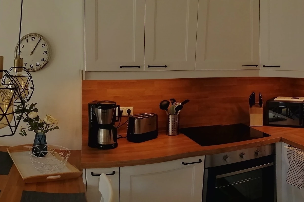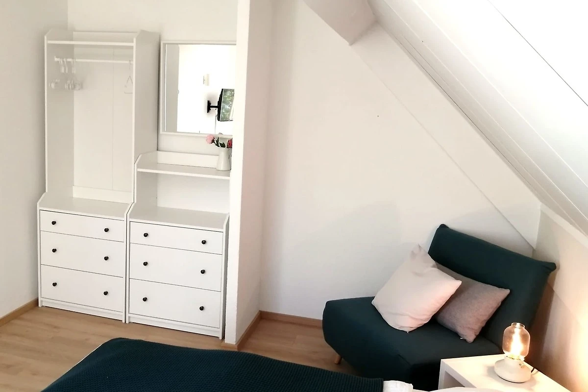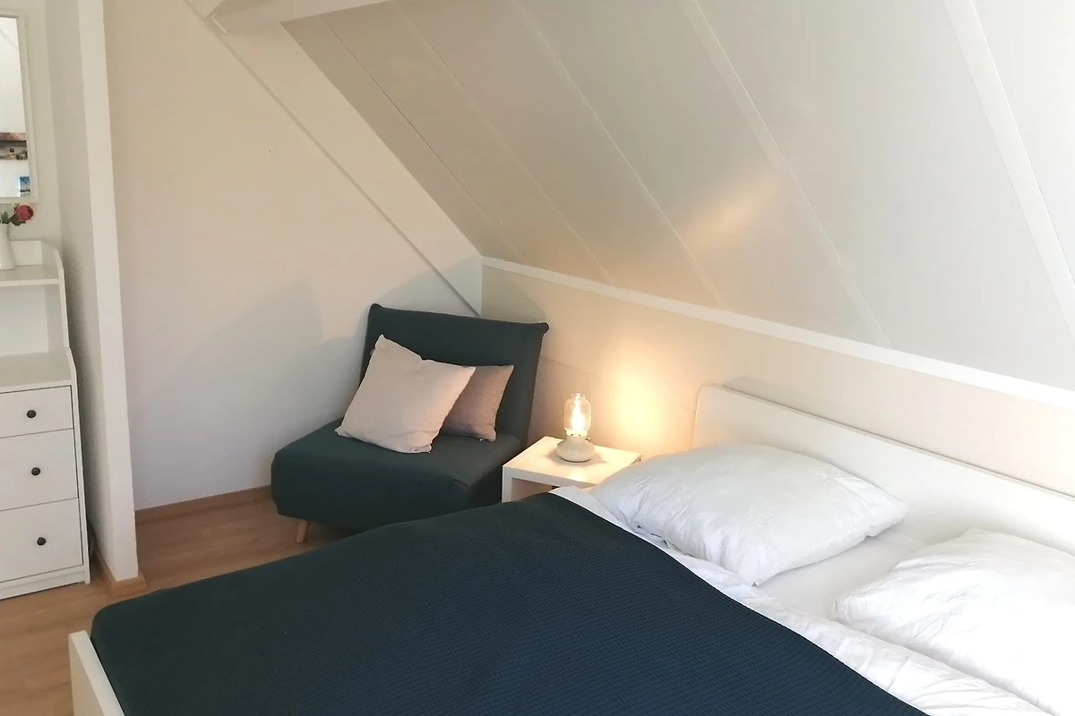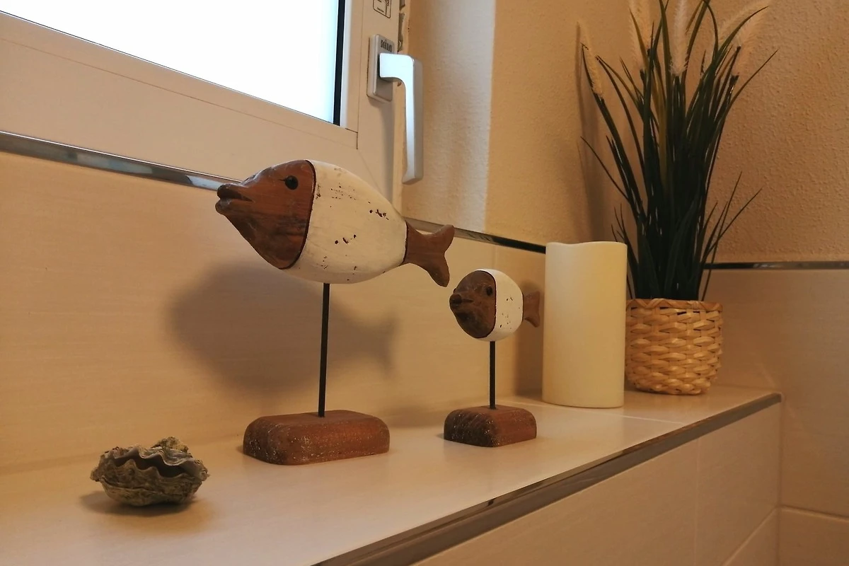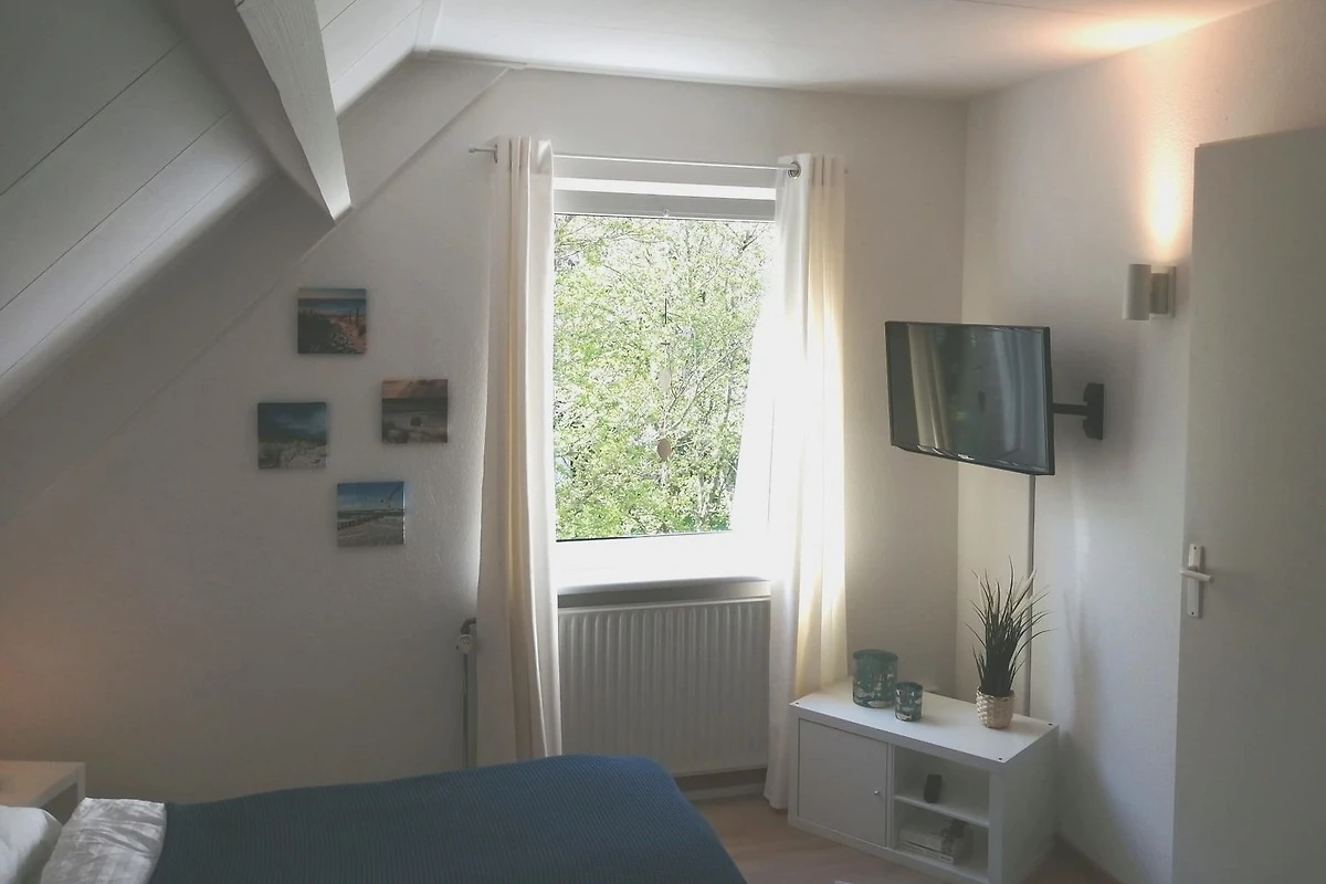 Unser modernes und liebevoll eingerichtetes Ferienhaus bietet auf 65 m² und 2 Etagen Platz für 4 Personen evtl. plus Kleinkind. Das Haus wurde Anfang 2022 komplett renoviert. Dabei wurde das Badezimmer komplett erneuert, die Böden und die Treppe wurden neu gemacht. Des Weiteren verfügt die Ferienwohnung über eine neue Küche inklusive neuer Geräte und neuem Mobiliar. Die Ferienwohnung unterteilt sich in einen grosszügigen Wohn-Essbereich und Badezimmer im Erdgeschoss sowie zwei Schlafzimmern im Obergeschoss. Das Haus verfügt über eine nach Süden ausgerichtete Terrasse, die ans Wohnzimmer angrenzt, auf der es sich wunderbar entspannen lässt. Hier stehen ein Tisch sowie 6 Gartenstühle und ein Grill mit diversem Zubehör zur Verfügung. Das Wohnzimmer ist mit einer Couch und zwei gemütlichen Sesseln ausgestattet, so dass auch 4 Personen ausreichend Platz finden, um auf dem grossen Flachbildschirm spannende Fernsehabende zu erleben. Weiterhin besteht im Wohnzimmer die Möglichkeit gemütliche Spielabende zu verbringen. Diverse Spiele (Spielesammlung, Uno u. ä.) stehen zur Verfügung. Natürlich verfügt das Haus über WLAN, so dass dem Streamen der Lieblingsserie oder dem Anschluss von Spielekonsolen nichts im Wege steht. Hinweis: Die Internetversorgung erfolgt über das Mobilfunknetz, so dass es zu anbieterabhängigen Versorgungsschwankungen kommen kann, auf die der Vermieter leider keinen Einfluss hat! Der gemütliche Essbereich verbindet Wohnzimmer und Küche miteinander und lädt zum gemeinsamen Frühstücken oder leckerem Abendessen ein. Hier finden 4 Personen bequem Platz. In einem separatem kleinen Abstellraum steht als Besonderheit eine Waschmaschine zur Verfügung und natürlich ein Wäscheständer um die Wäsche an der frischen Nordseeluft auf der Terrasse zu trocknen. Die moderne Küche lässt keine Wünsche offen. Hier finden Sie einen Kühlschrank, einen Backofen, einen Herd mit Induktionsfeld, Geschirrspüler und Mikrowelle. Zusätzlich gibt es noch einen Toaster, einen Wasserkocher und eine Kaffeemaschine. Das moderne frisch renovierte Badezimmer verfügt über eine ebenerdige Dusche mit eleganter Glasduschwand, WC, Waschtisch mit grossem Spiegelschrank und diversen Ablagemöglichkeiten, Handtuchtrockner und Fön. Im Obergeschoss befinden sich die beiden Schlafzimmer, die neu mit Laminat ausgestattet sind. Das etwas grössere Schlafzimmer verfügt über ein Doppelbett (180x200), grosser Aufbewahrungskombi, Schlafsessel (evtl. für Kinder, die nicht allein nebenan schlafen wollen) und TV. Bei Bedarf bietet dieses Zimmer genug Platz, um hier ein Kinderreisebett (im Haus vorhanden) zuzustellen. Das zweite Schlafzimmer ist mit zwei Einzelbetten ausgestattet. Dieses Zimmer verfügt als Ablagemöglichkeit ebenfalls über eine geräumige Kommode. Neben dem Eingang befindet sich ein Fahrradständer, an dem Fahrräder abgestellt und angeschlossen werden können. Auf dem Gelände befindet sich ein Hartgummiplatz, der für sportliche Aktivitäten wie Fussball, Handball, Basketball oder Ähnlichem zur Verfügung steht. Weiterhin befinden sich auf dem Gelände viele verschiedene Spielplätze, die alle Kinderwünsche erfüllen. Parkplätze sind direkt vorm Haus ausreichend vorhanden. Bettwäsche und Handtücher können bei Bedarf zugebucht werden. Bitte haben Sie Verständnis dafür, dass das Rauchen und das Mitbringen von Haustieren in unserer Ferienwohnung nicht gestattet ist.